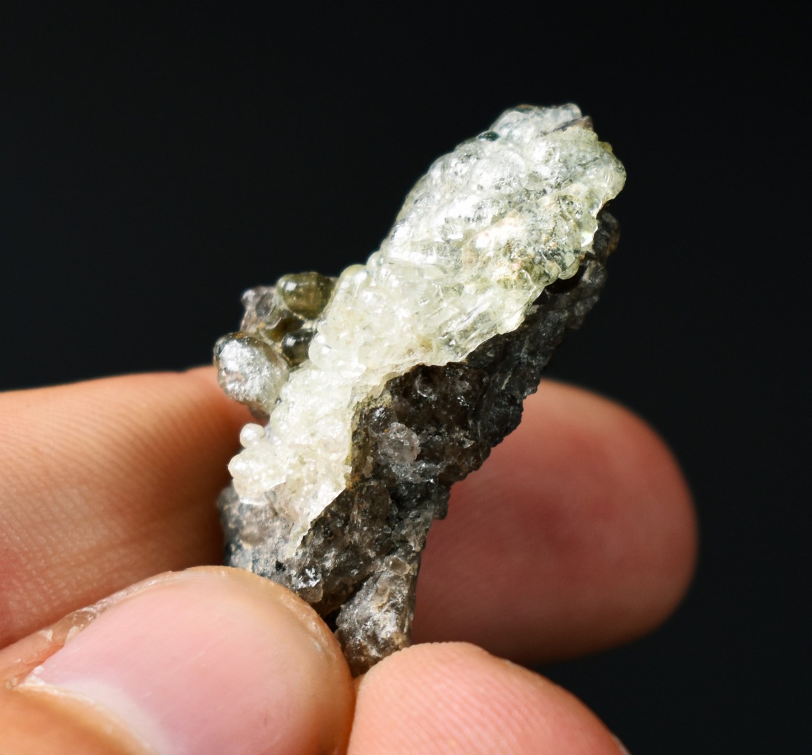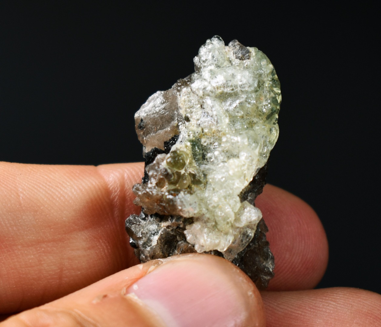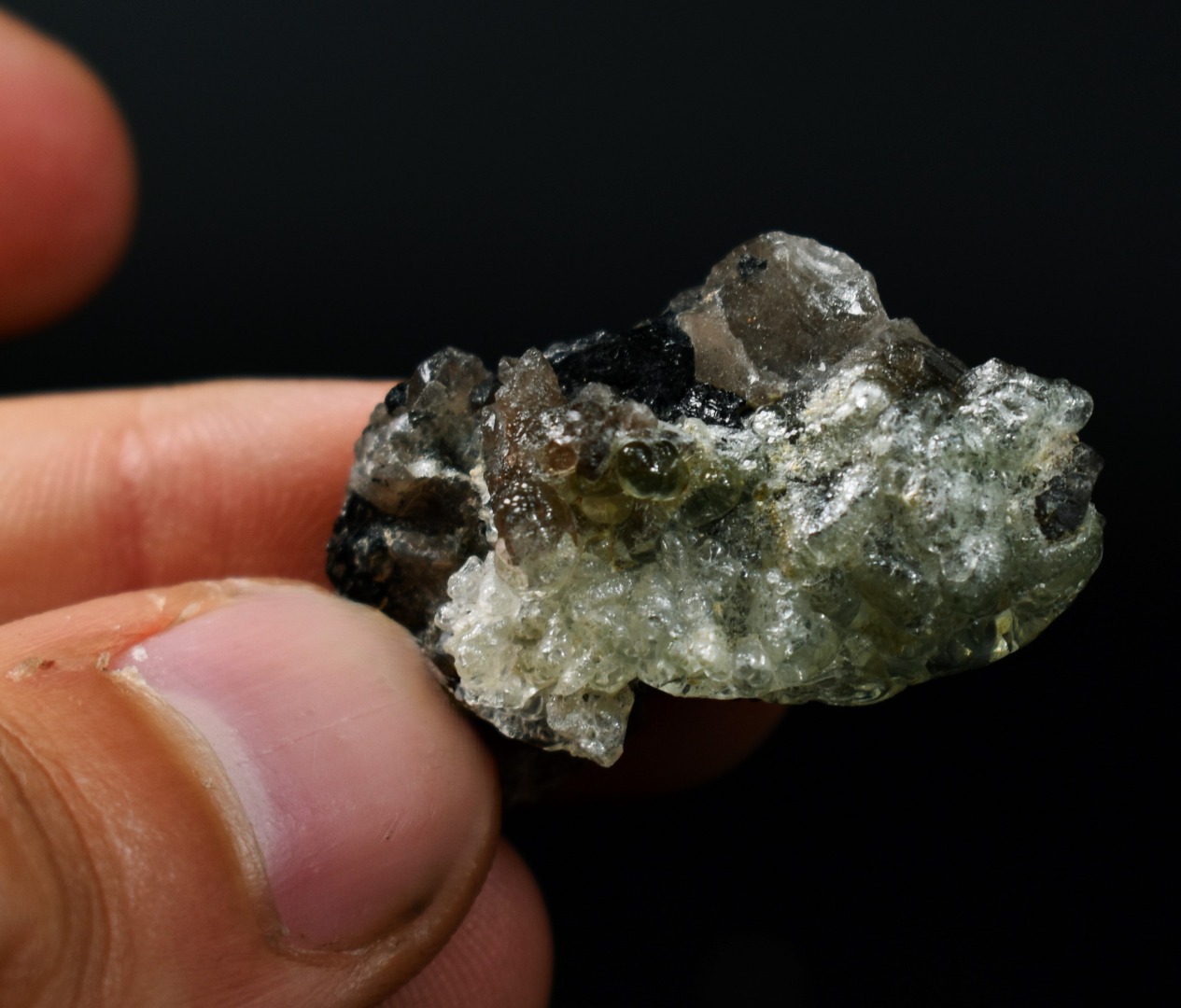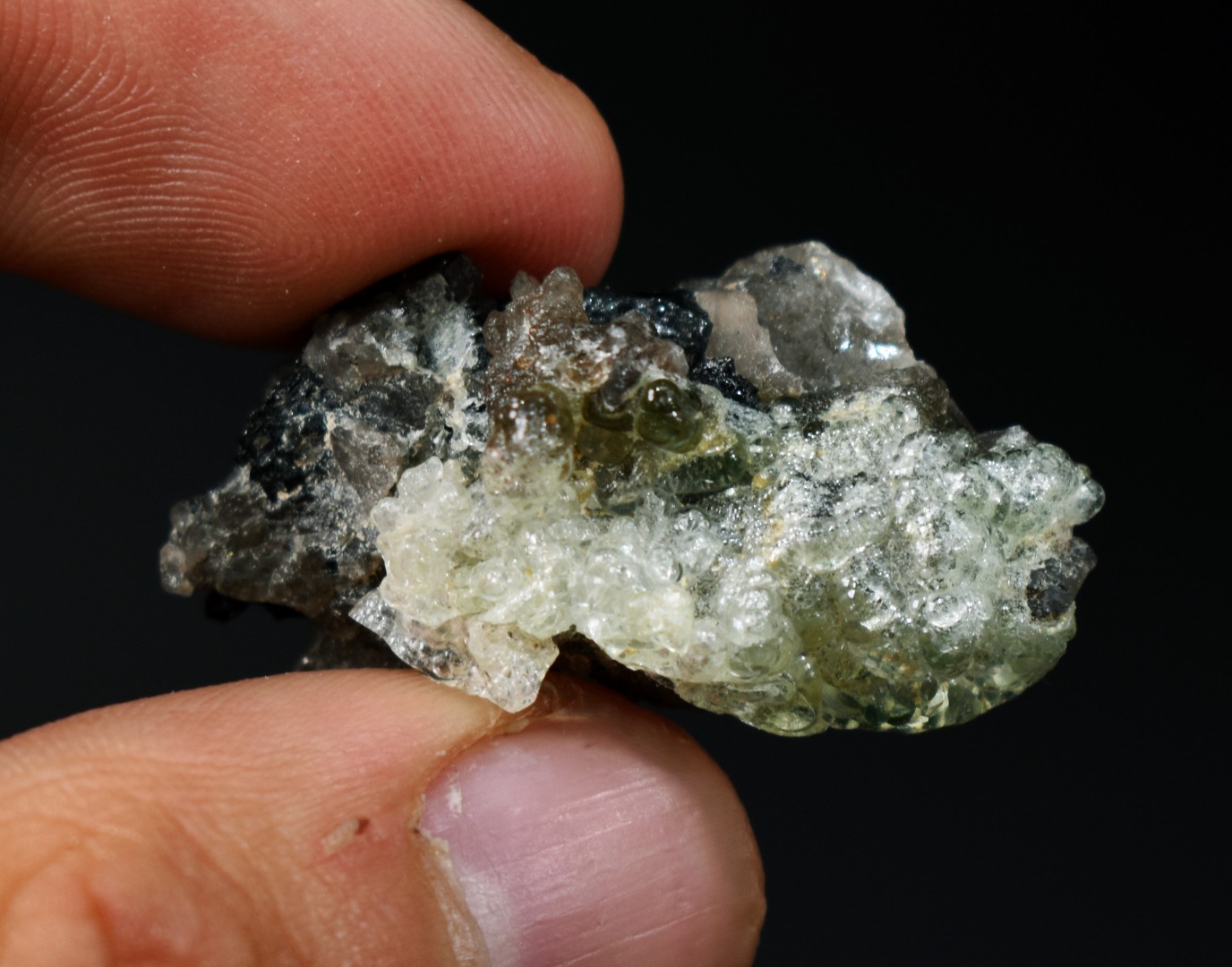 Fluorescent Hyalite Opal with Smoky Quartz, Black Tourmaline – Mineral from Erongo Mountains Namibia, 7 grams
