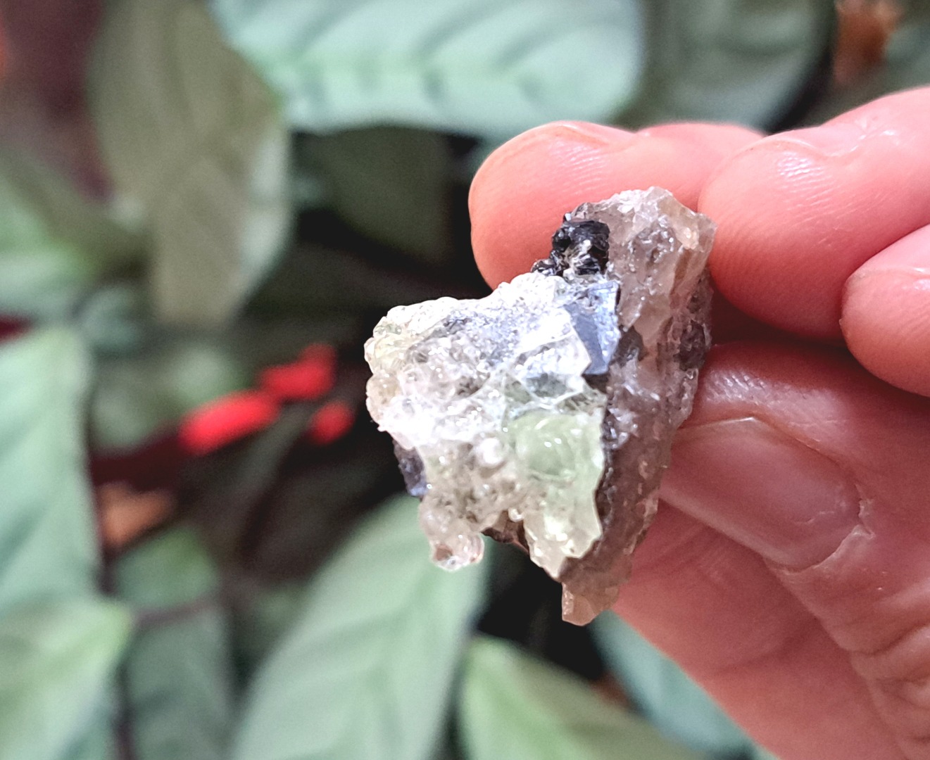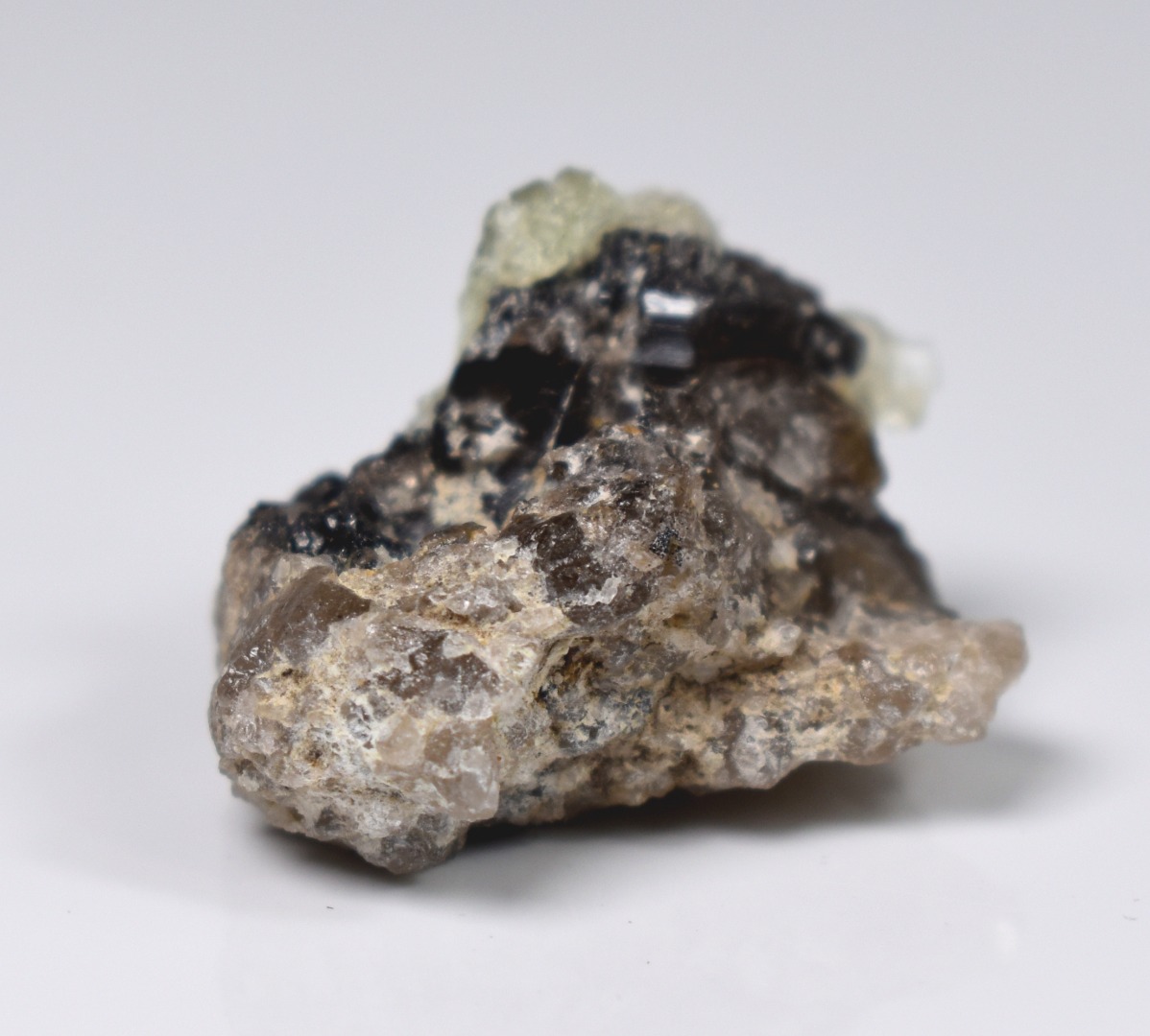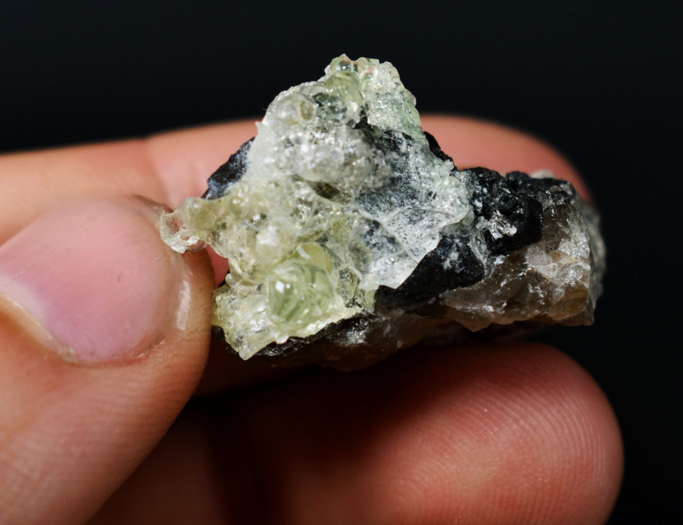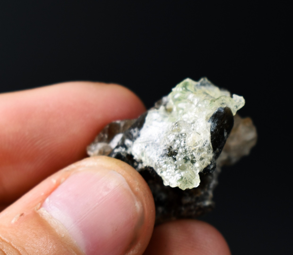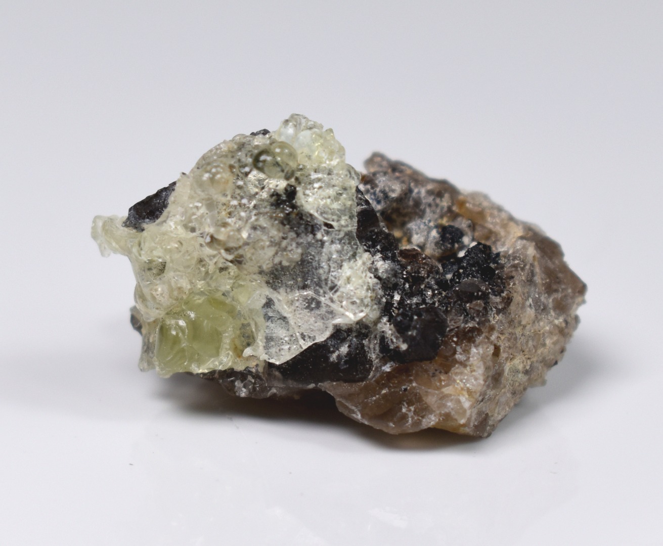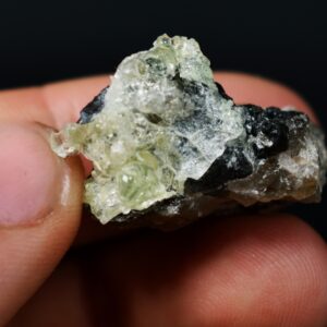Fluorescent Hyalite Opal with Smoky Quartz, Black Tourmaline – Mineral from Erongo Mountains Namibia, 8 grams