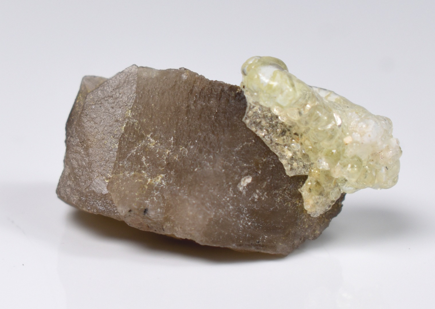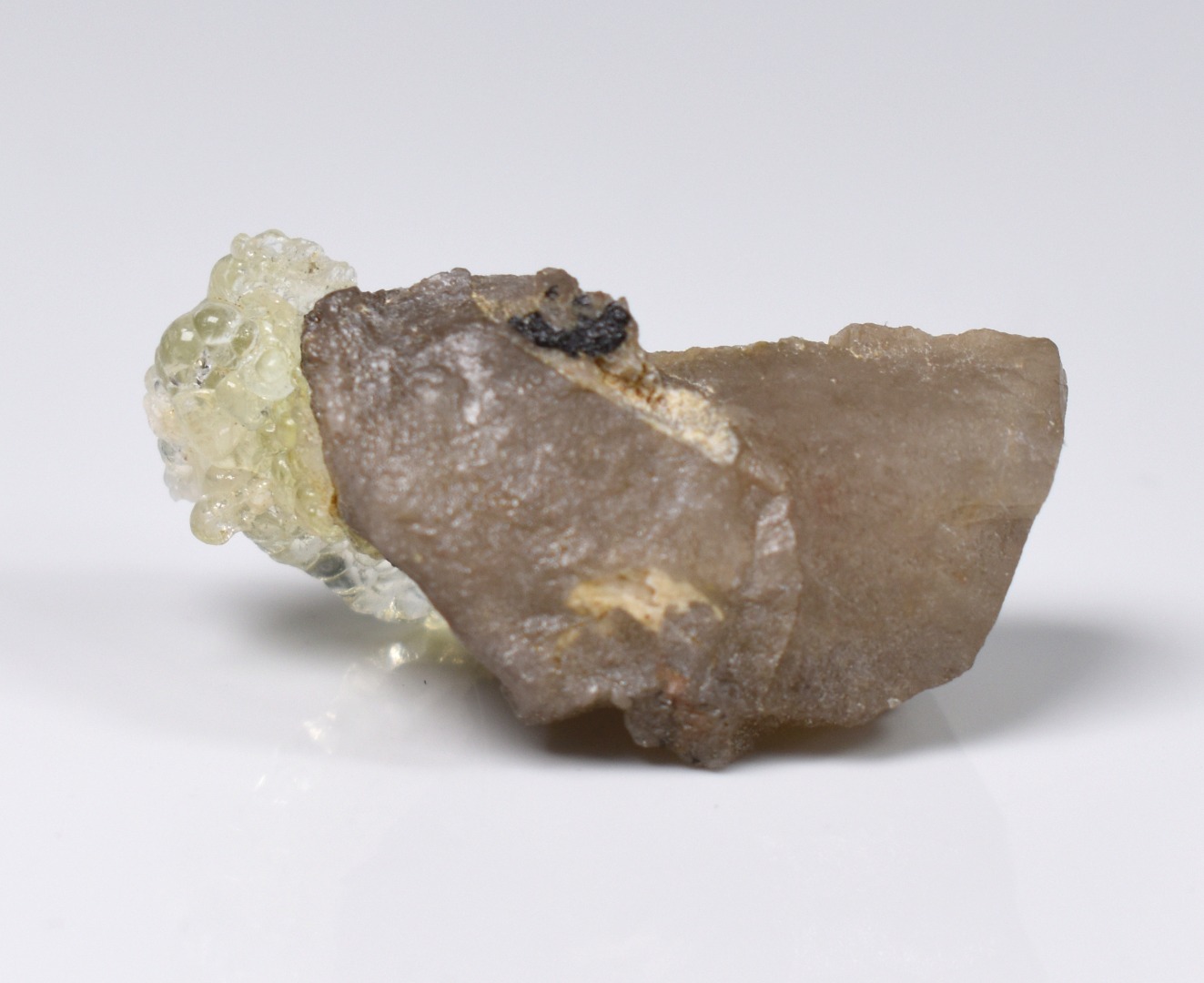 Fluorescent Hyalite Opal Crystal Specimen with Smoky Quartz and Black Tourmaline