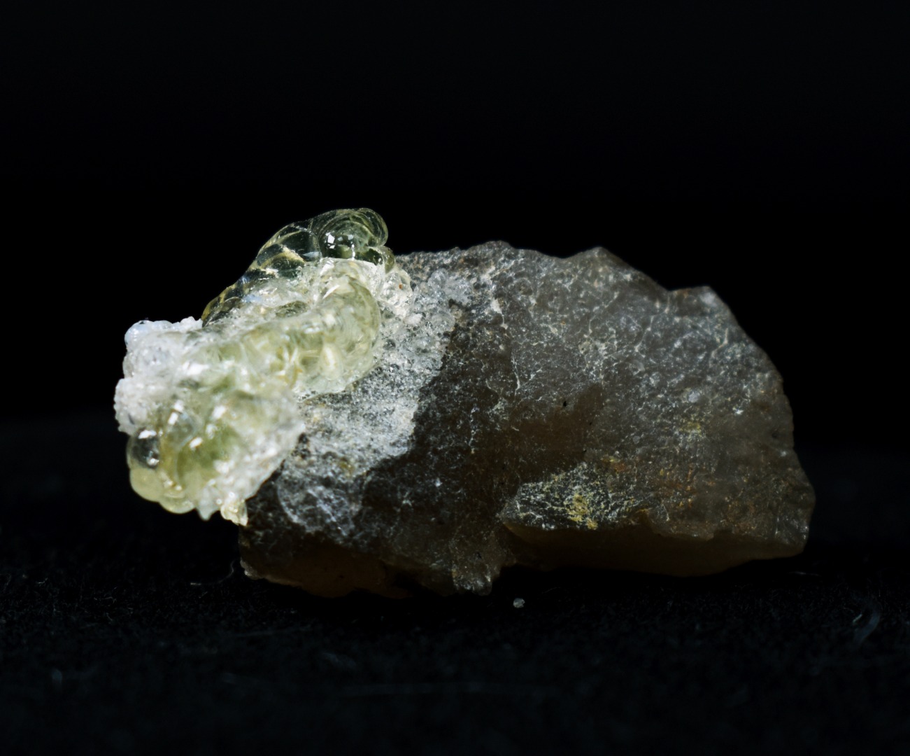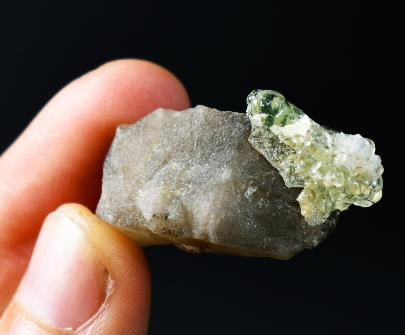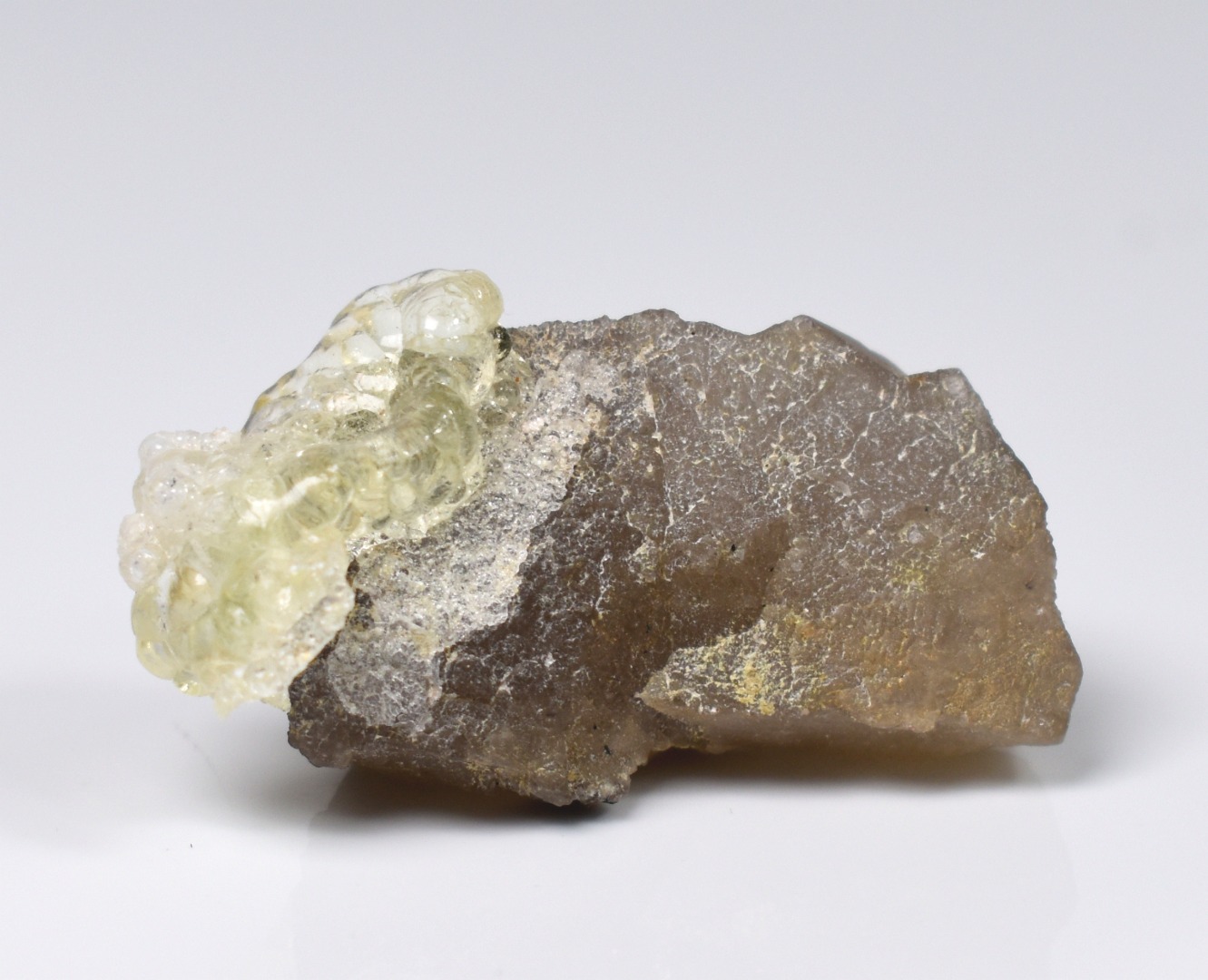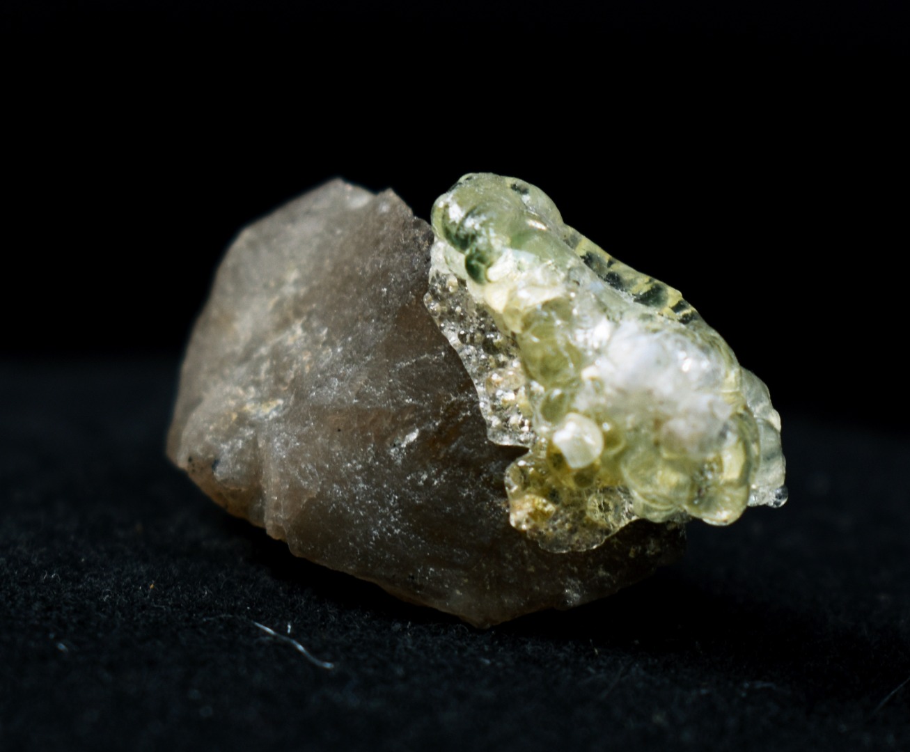 Fluorescent Hyalite Opal with Smoky Quartz, Black Tourmaline – Mineral from Erongo Mountains Namibia, 9 grams