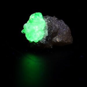 Glows a vivid green under longwave UV light (shortwave UV may also elicit a reaction).