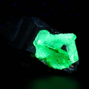 Glows a vivid green under longwave UV light (shortwave UV may also elicit a reaction).