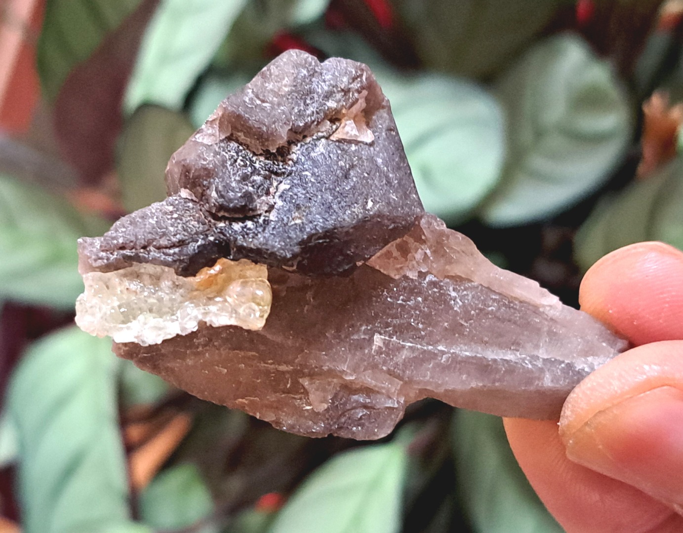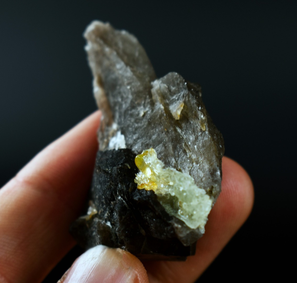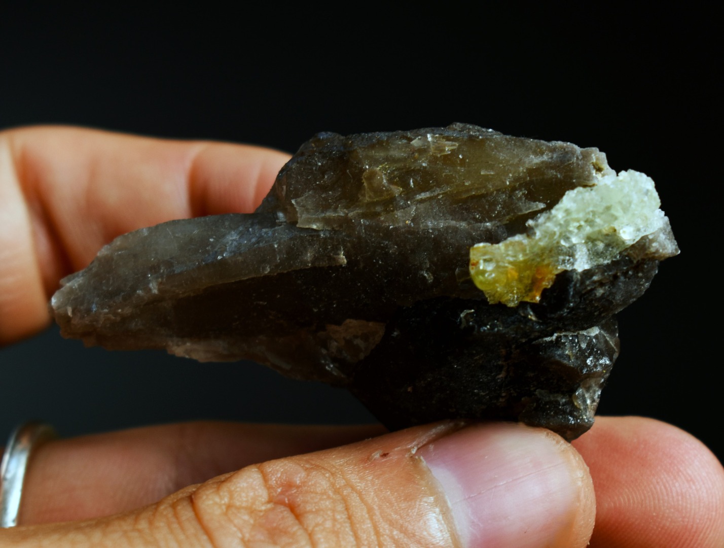 Fluorescent Hyalite Opal Crystal Specimen with Smoky Quartz