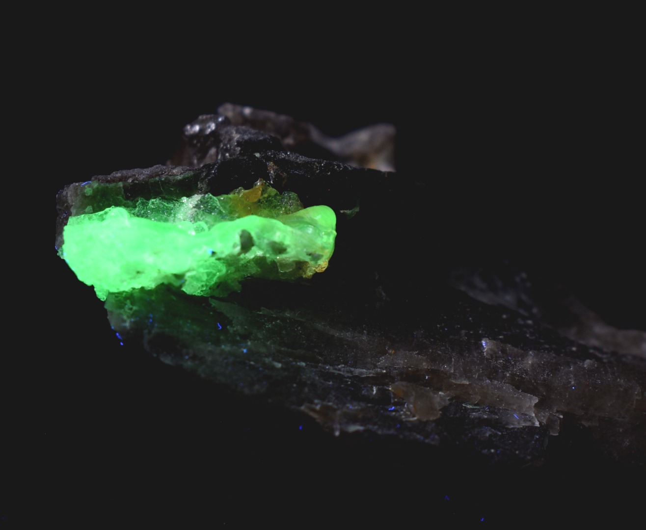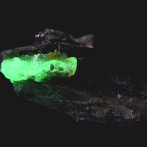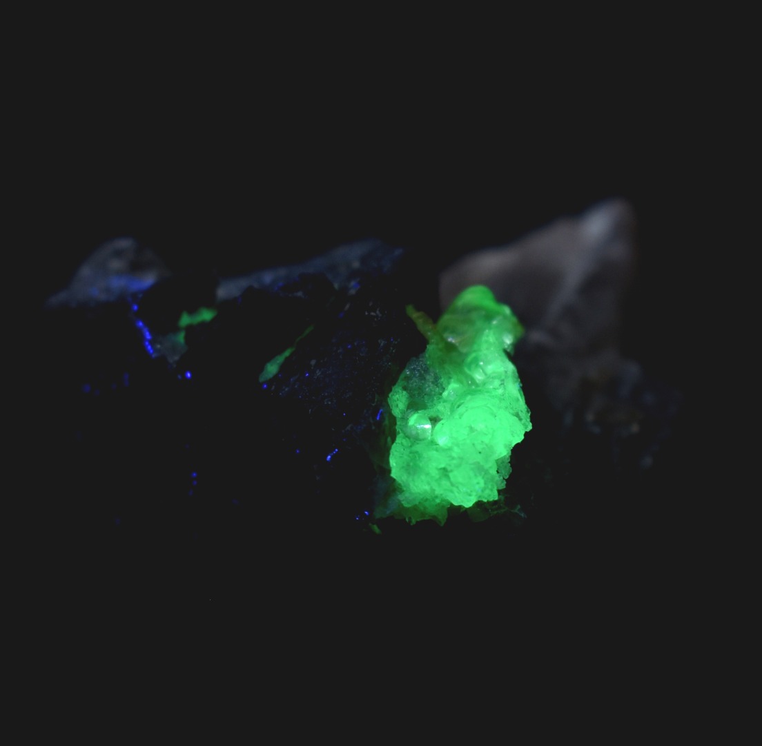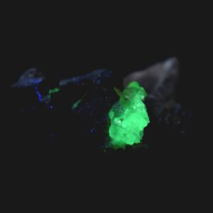 Glows a vivid green under longwave UV light (shortwave UV may also elicit a reaction).