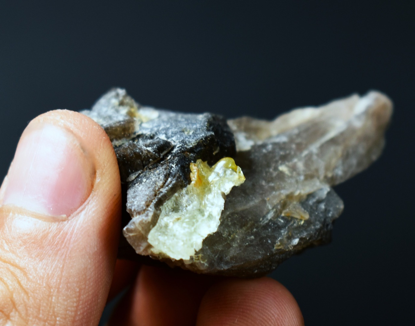 Fluorescent Hyalite Opal with Smoky Quartz – Mineral from Erongo Mountains Namibia, 28 grams