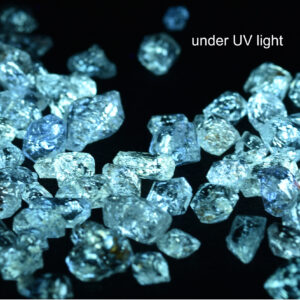 These crystals will glow very strongly under UV light due to the inclusions. We have tried to capture this in a photograph as best we can.