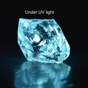 These crystals will glow very strongly under UV light due to the inclusions. We have tried to capture this in a photograph as best we can.