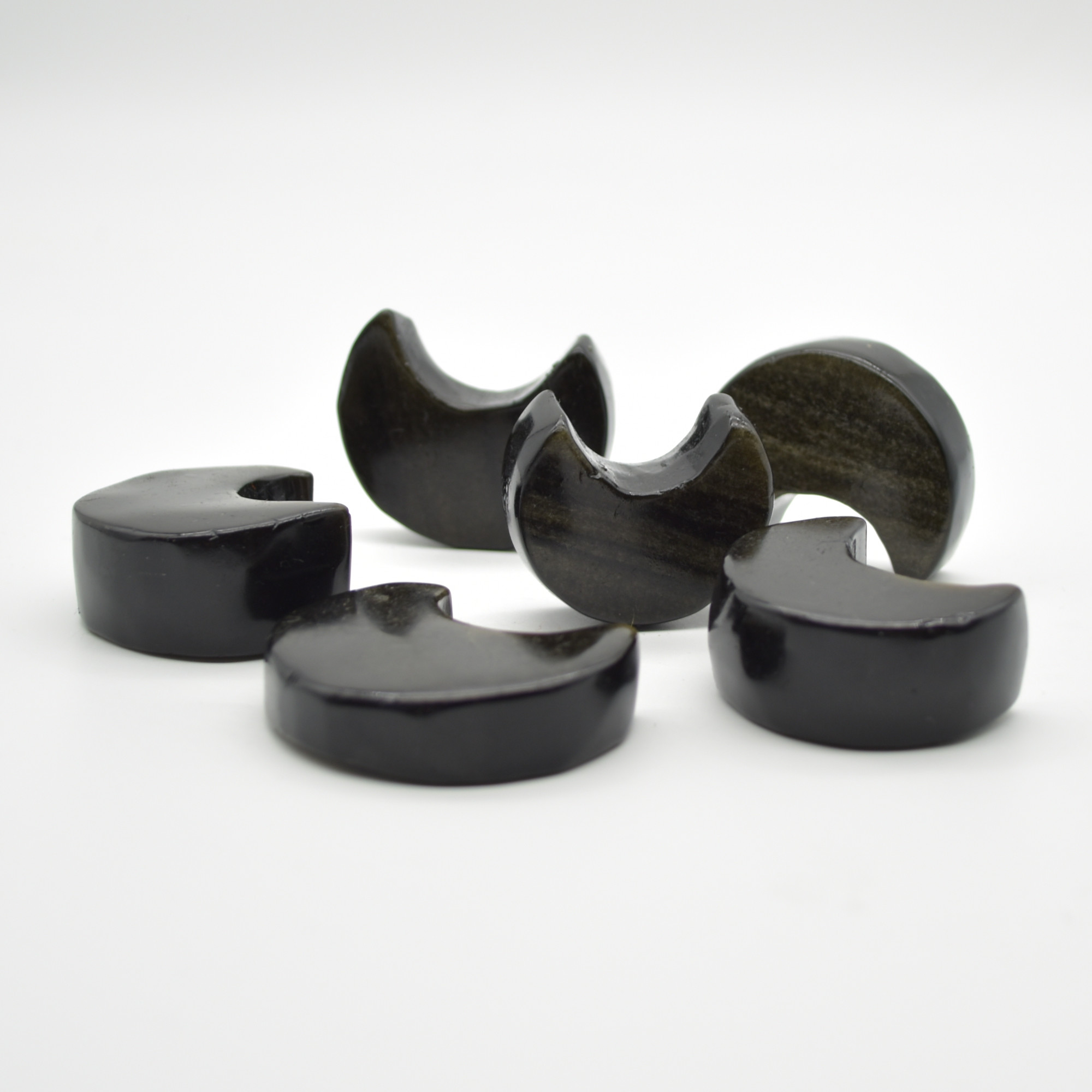 Quantity: 1 Obsidian Moon in total, will be randomly hand picked and packed for you, each single piece is beautiful with its own unique colour and markings.