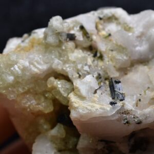 - Natural Green Herderite RARE Synergy 12, Crystal Specimen Stone with Schorl Black Tourmaline, Elbaite Green Tourmaline, Albite, Feldspar