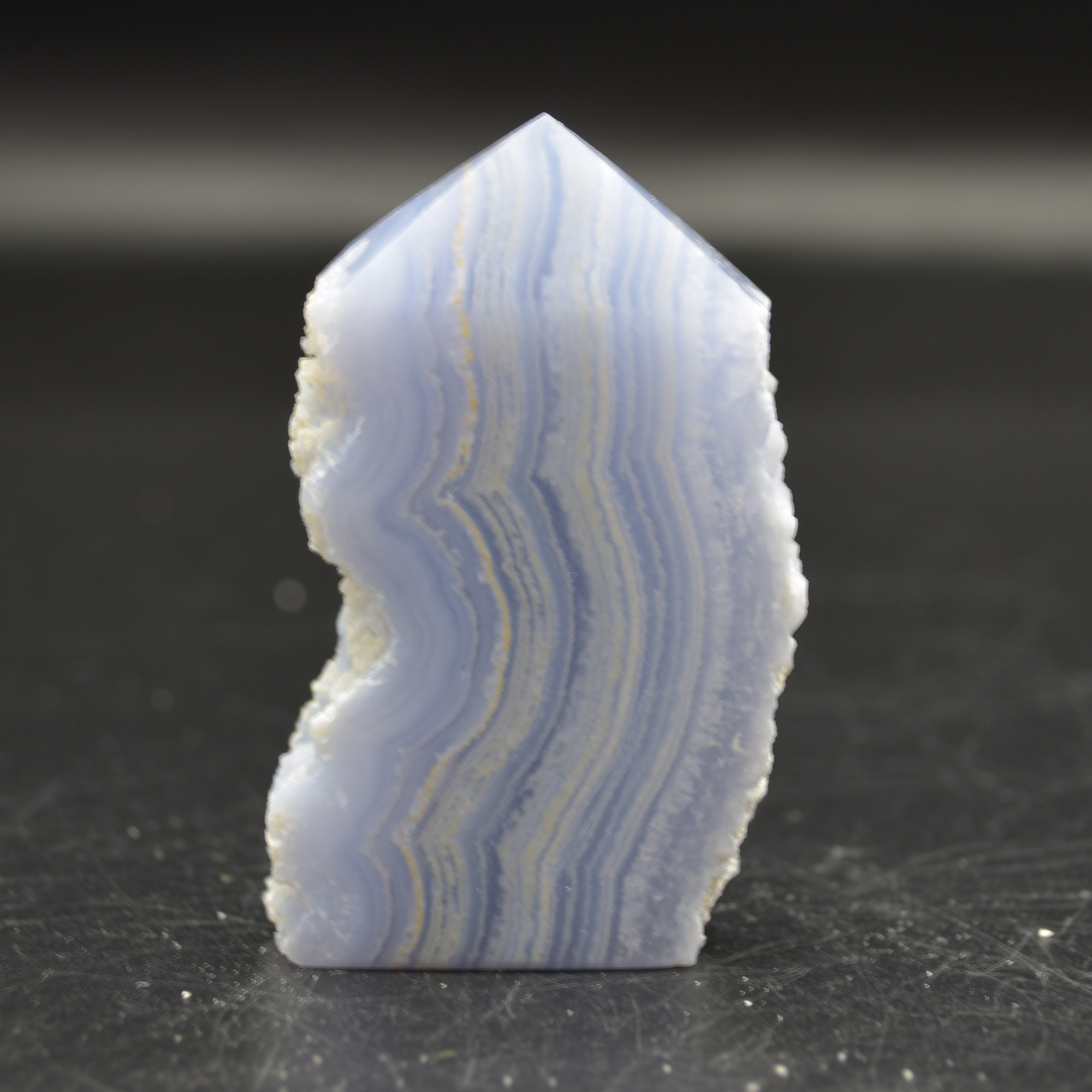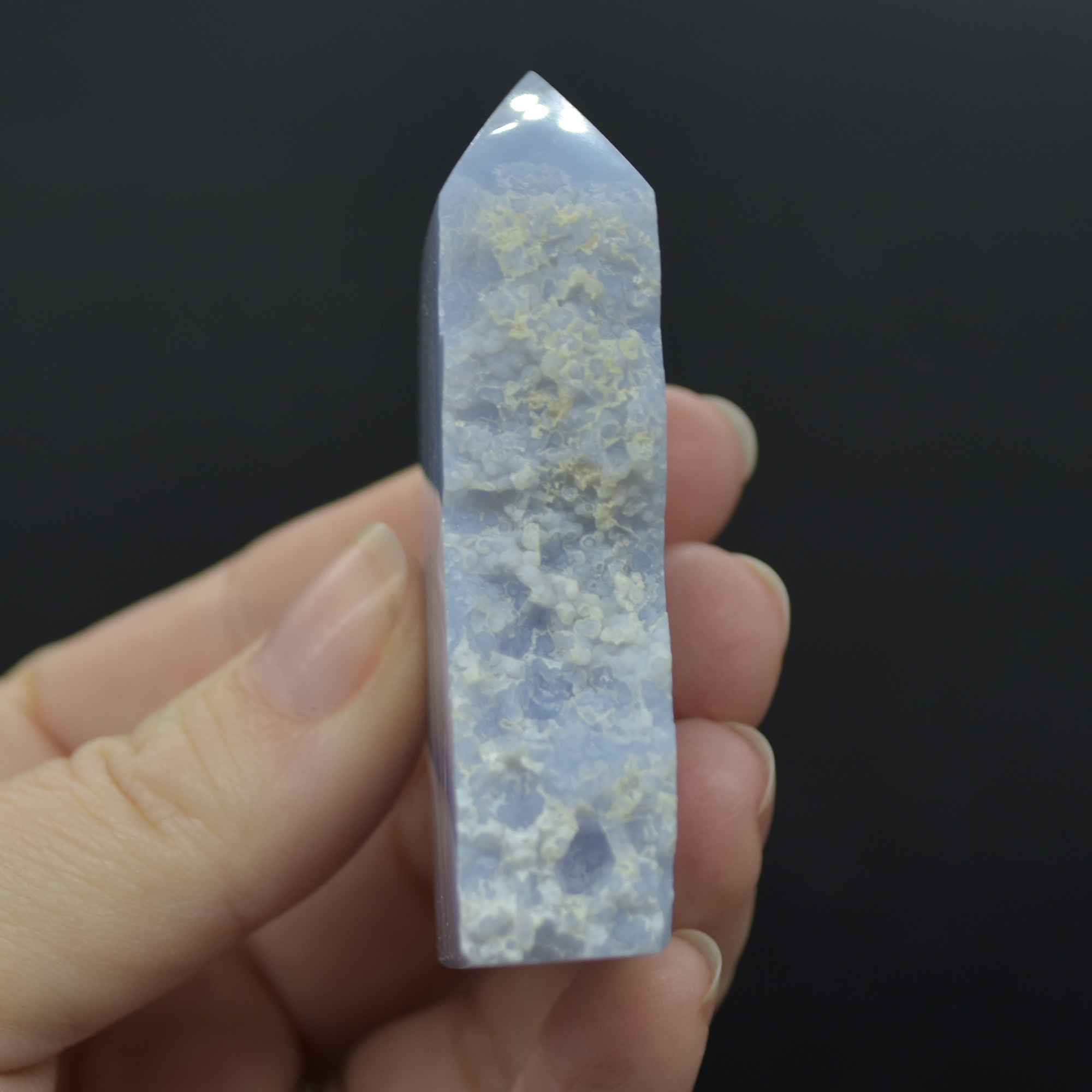 High Quality Blue Lace Agate Tower Point Slice – 6.3cm x 3.5cm x 1.5cm – 70 grams – #14