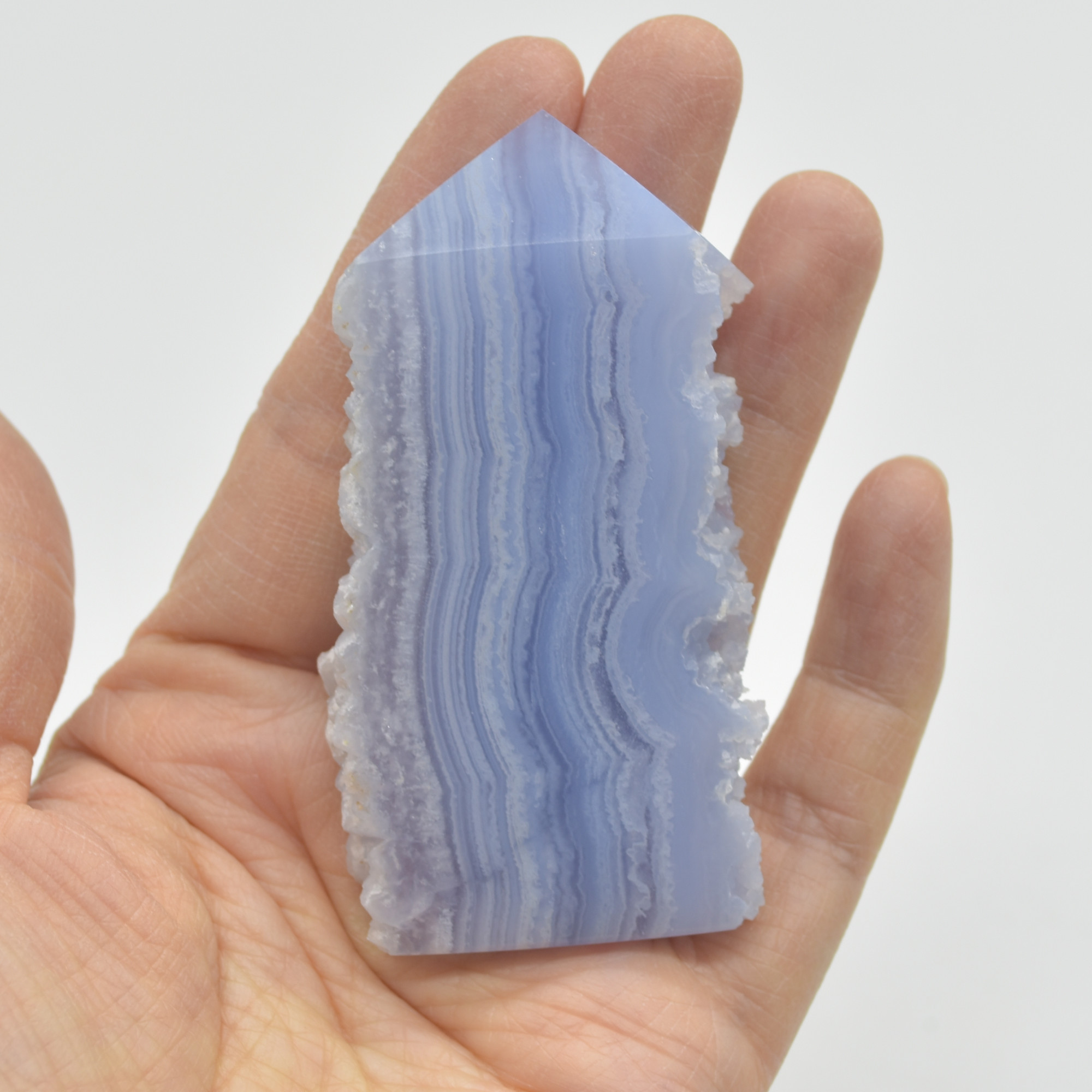 High Quality Blue Lace Agate Tower Point Slice – 7.3cm x 4cm x 1cm – 59 grams – #05