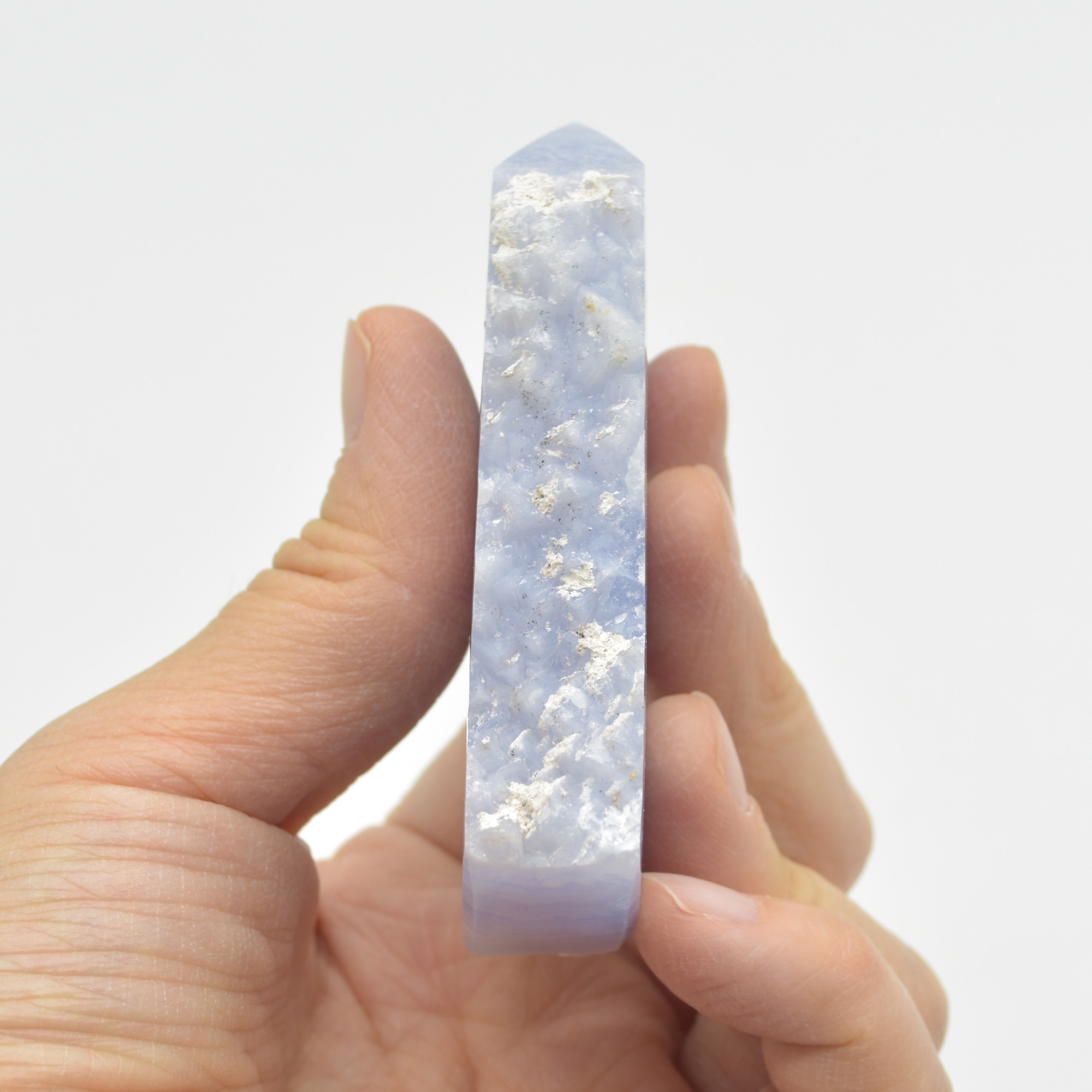 High Quality Blue Lace Agate Tower Point Slice – 7.5cm x 4cm x 1.4cm – 89 grams – #06