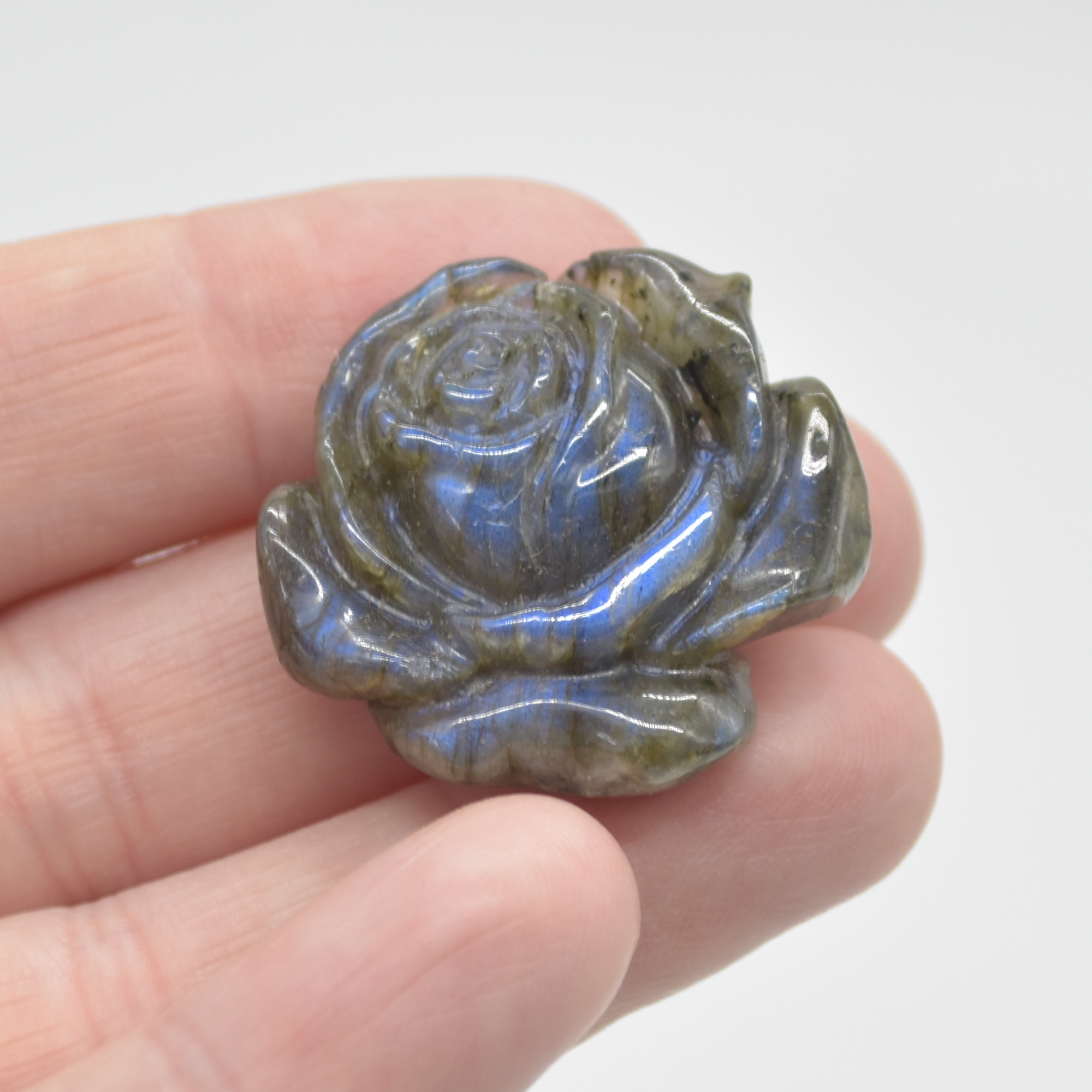 Labradorite Carved Rose Flower – 3cm – 1 Count