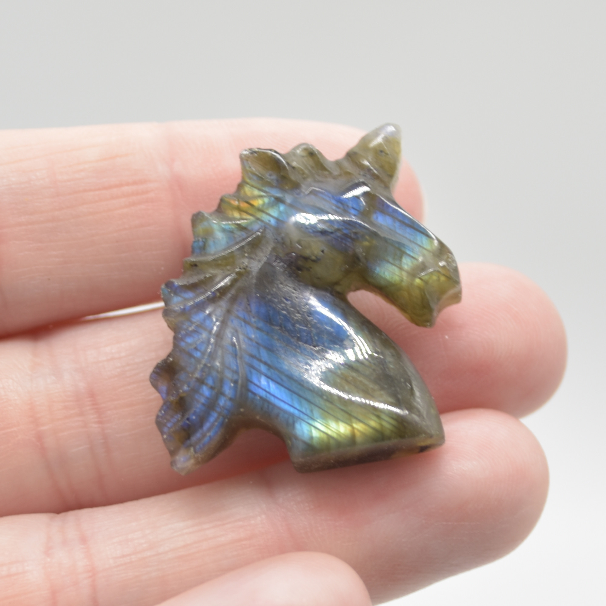 Quantity: 1 Labradorite unicorn head in total will be hand picked at random from our beautiful stock.