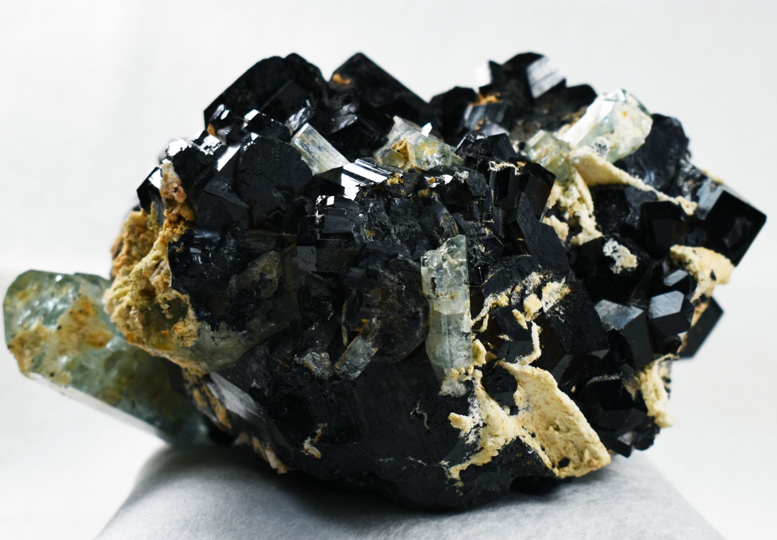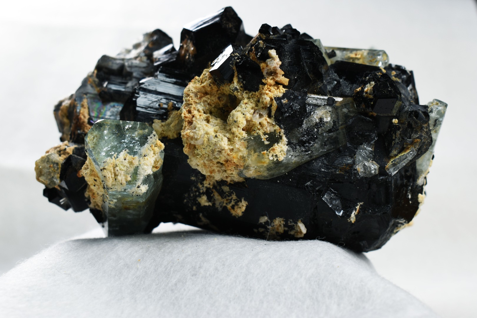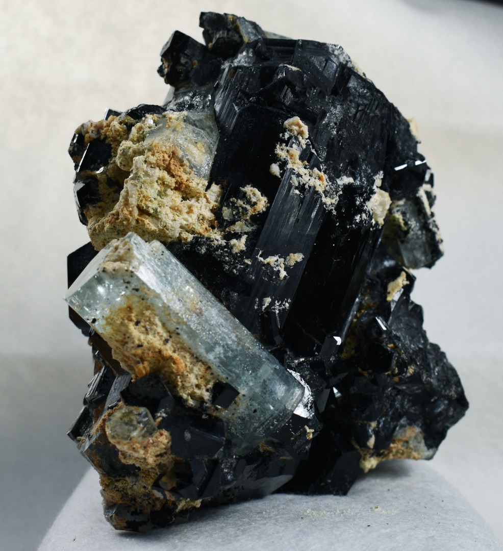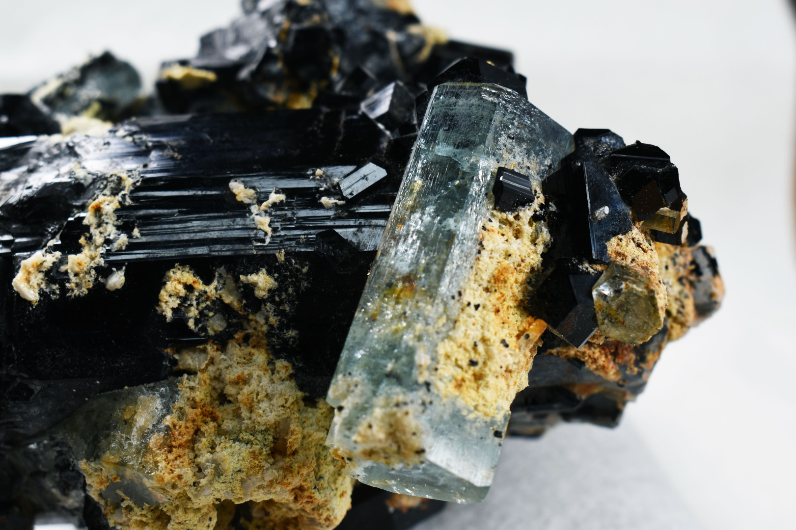 Large Beryl var. Aquamarine with Schorl Black Tourmaline & Feldspar Raw Cluster Specimen