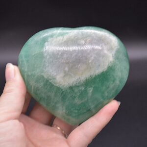 Large Green Fluorite Crystal Puffy Heart – 482 grams – 7.8cm #002