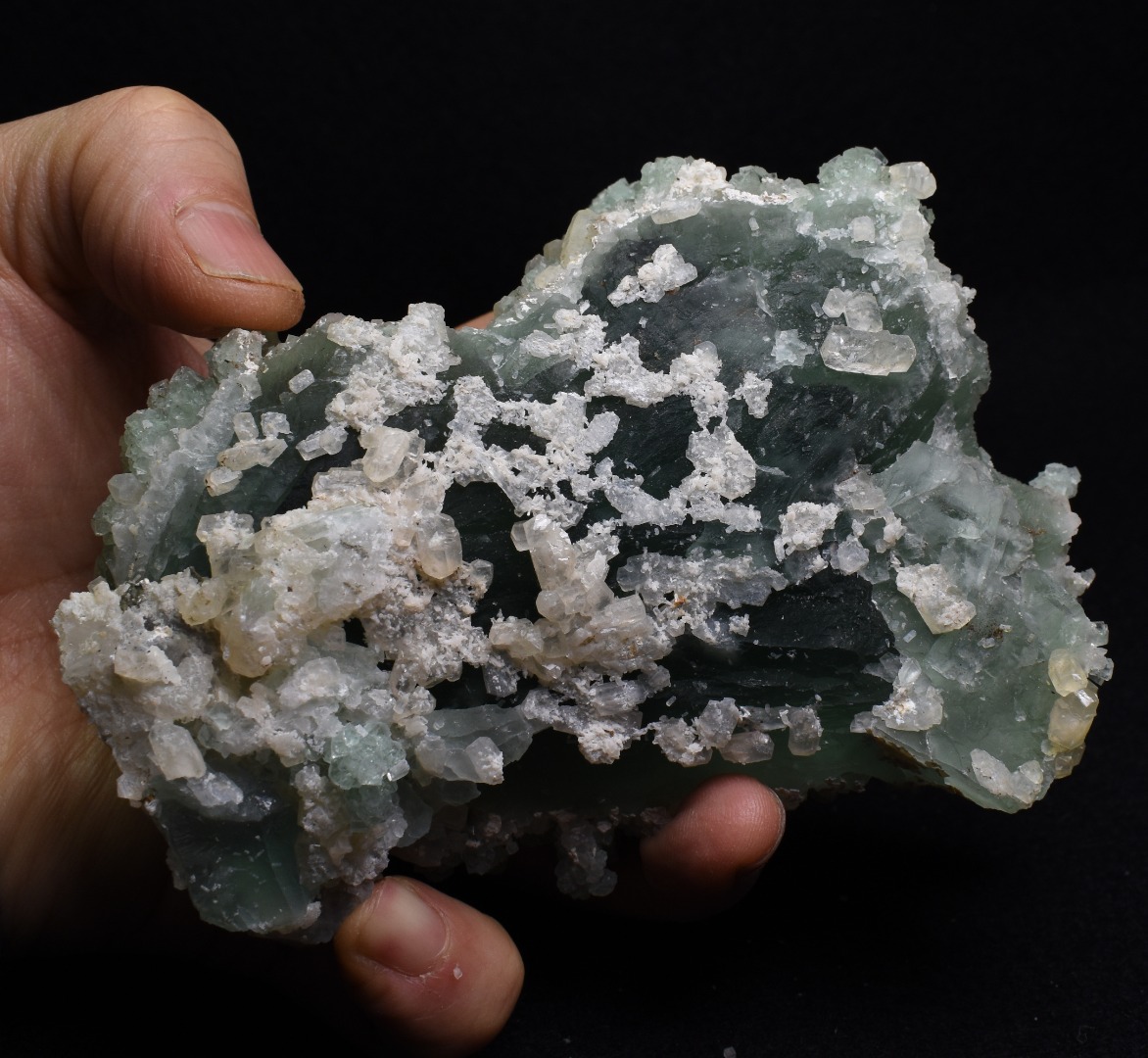 Large Green Fluorite Raw Cluster Specimen (with Calcite Orange UV Reaction) from Hunan, China – 453 grams #04