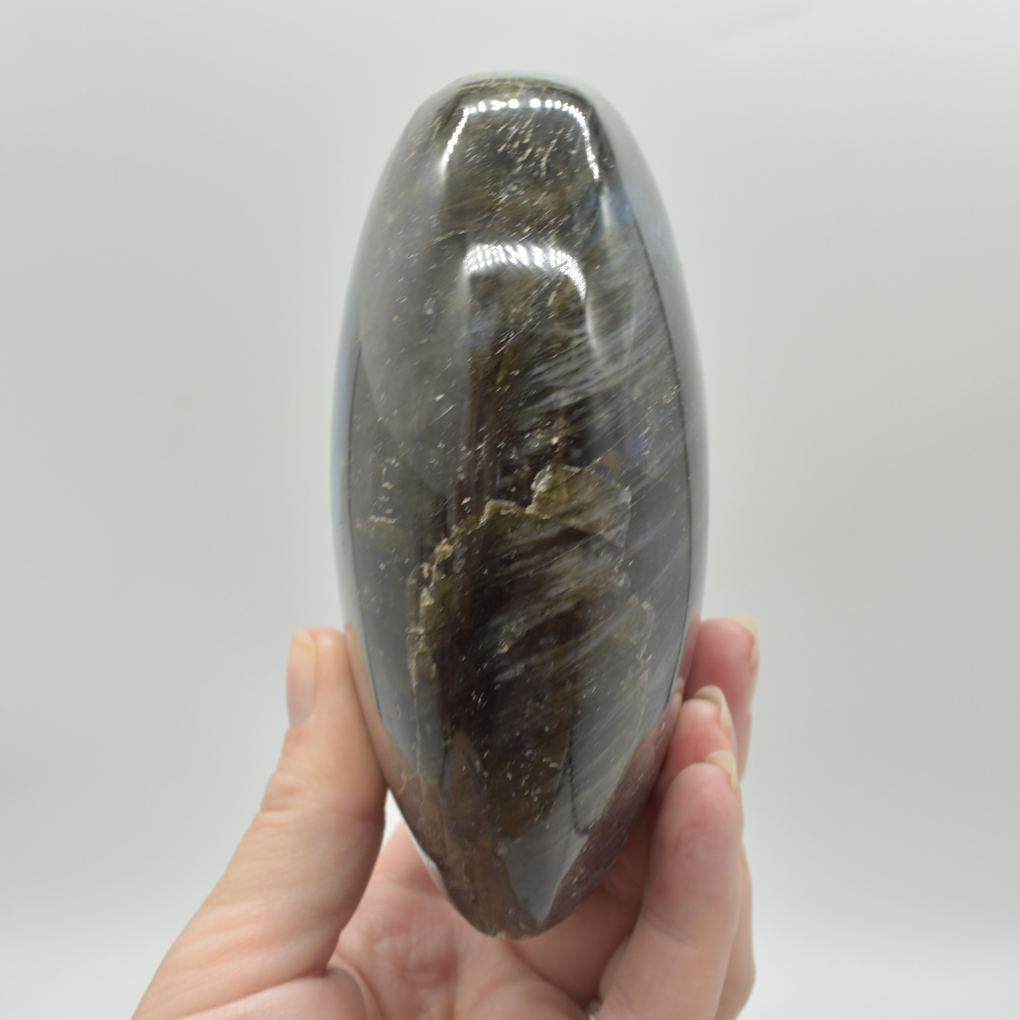 Large Labradorite Crystal Puffy Heart with beautiful Blue, Green and Yellow iridescent hues