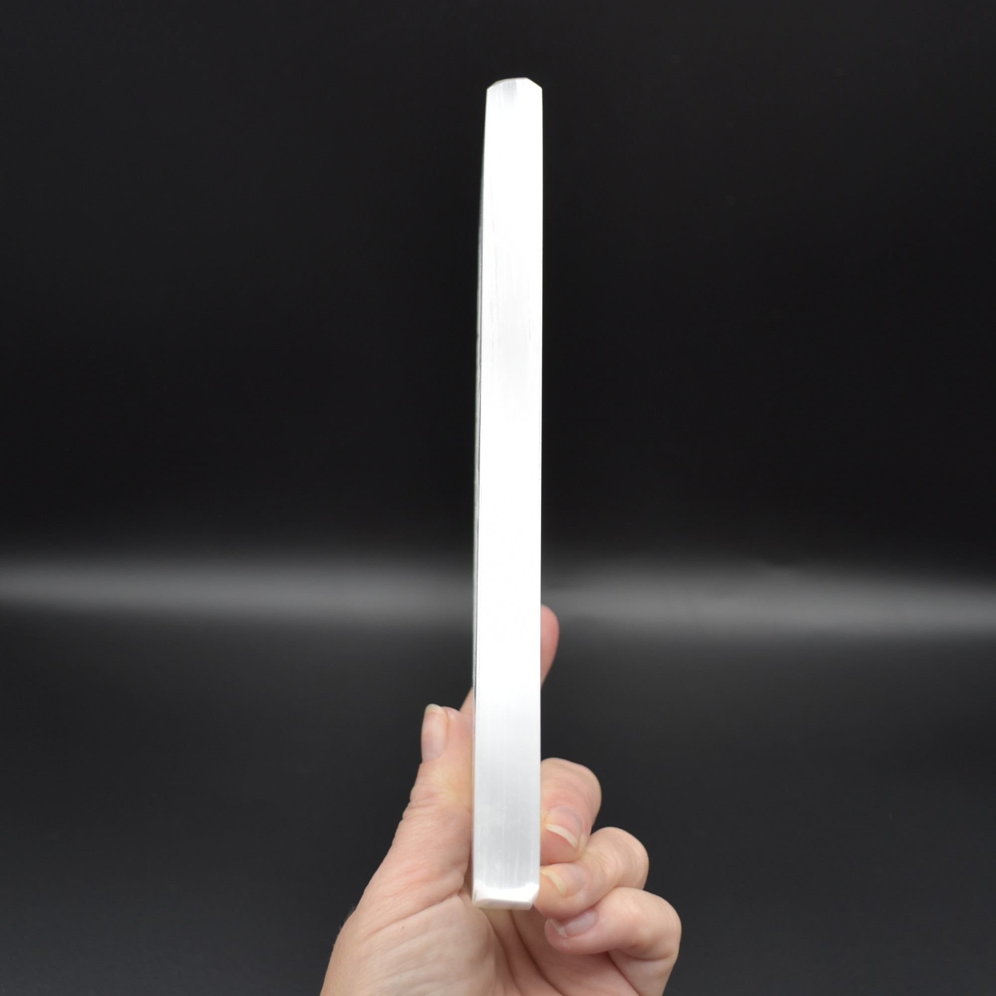 These plates are made from white fibrous Satin Spar which is a variety of Gypsum. The stone is often called Selenite, although the two are closely related (they are both forms of Gypsum), Selenite actually grows in large clear crystal forms. Satin Spar is a very delicate stone and can easily scratch and mark and should be handled with care.