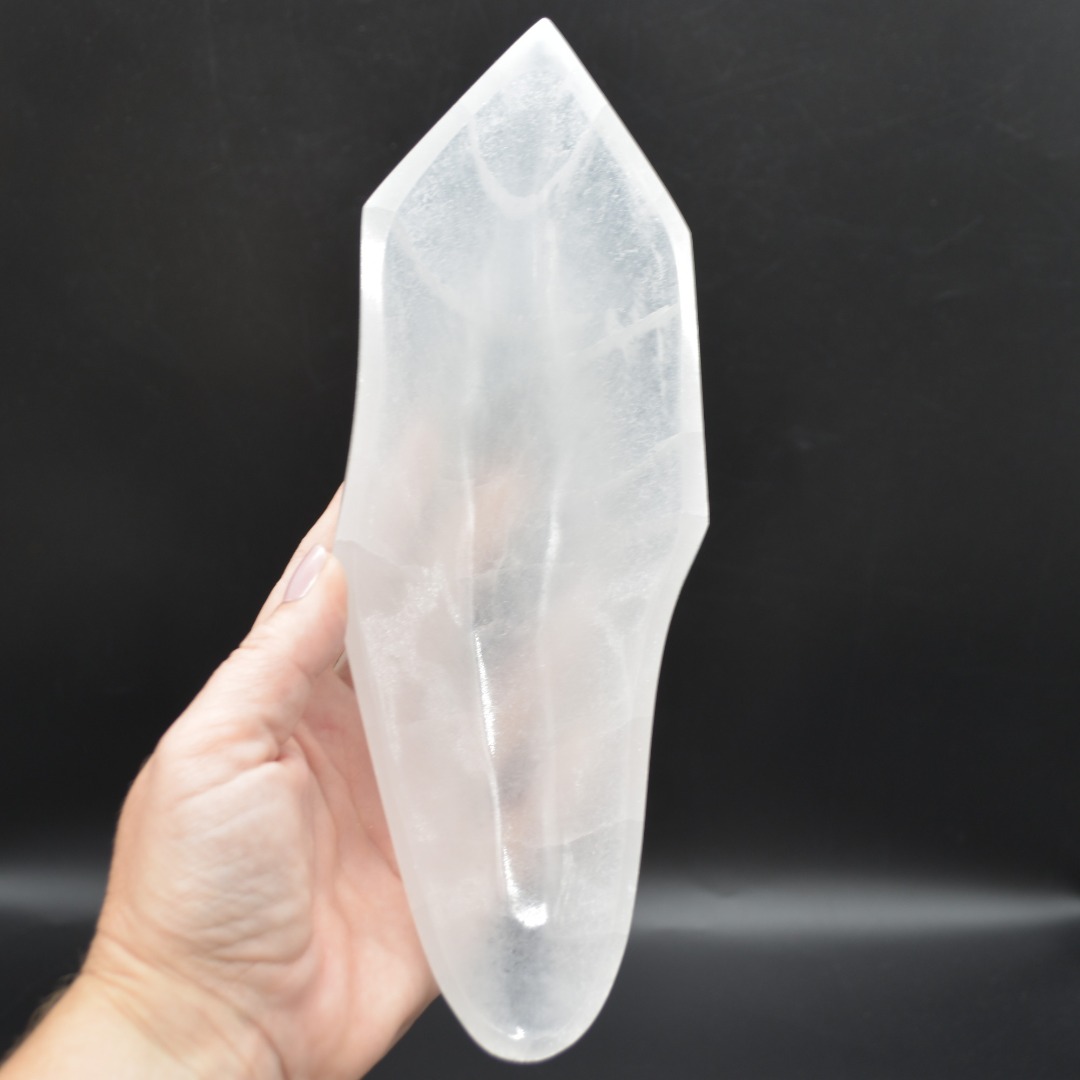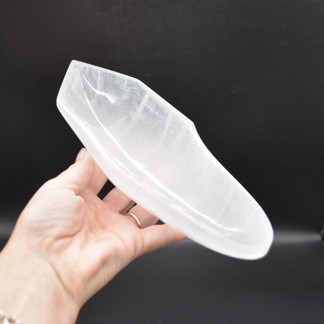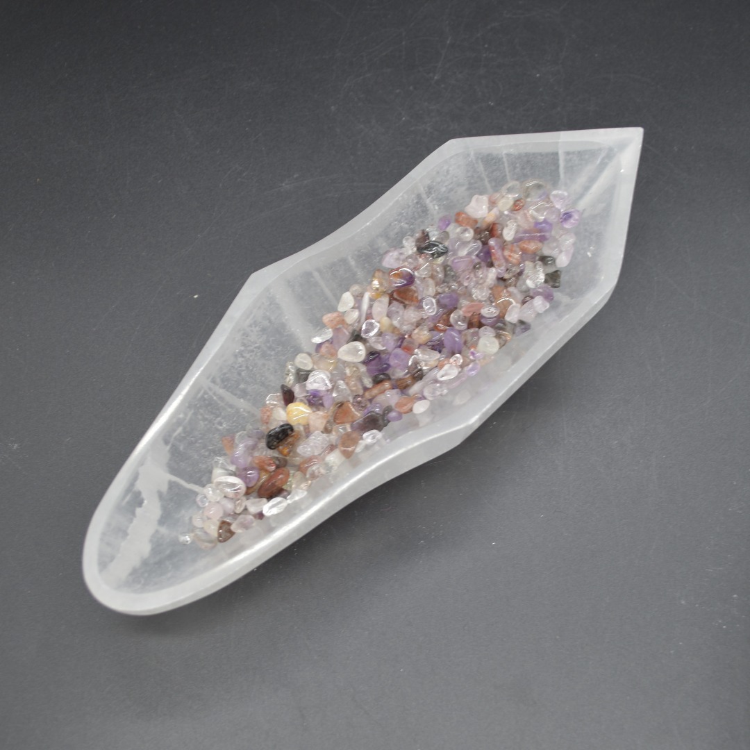 - Natural Polished Selenite (Satin Spar) Semi-precious Gemstone Irregular Leaf / Boat shaped Crystal Charging bowl