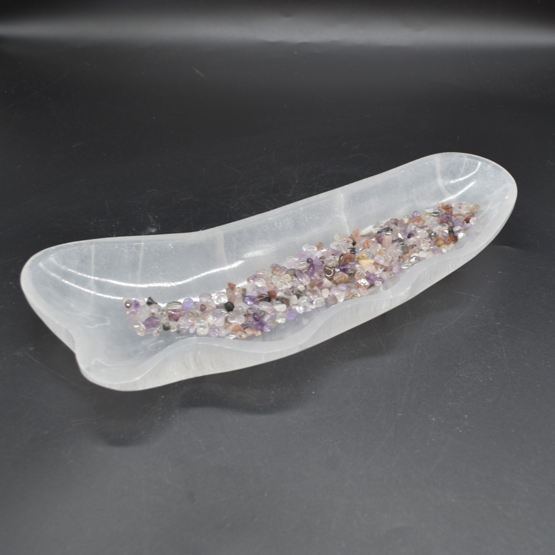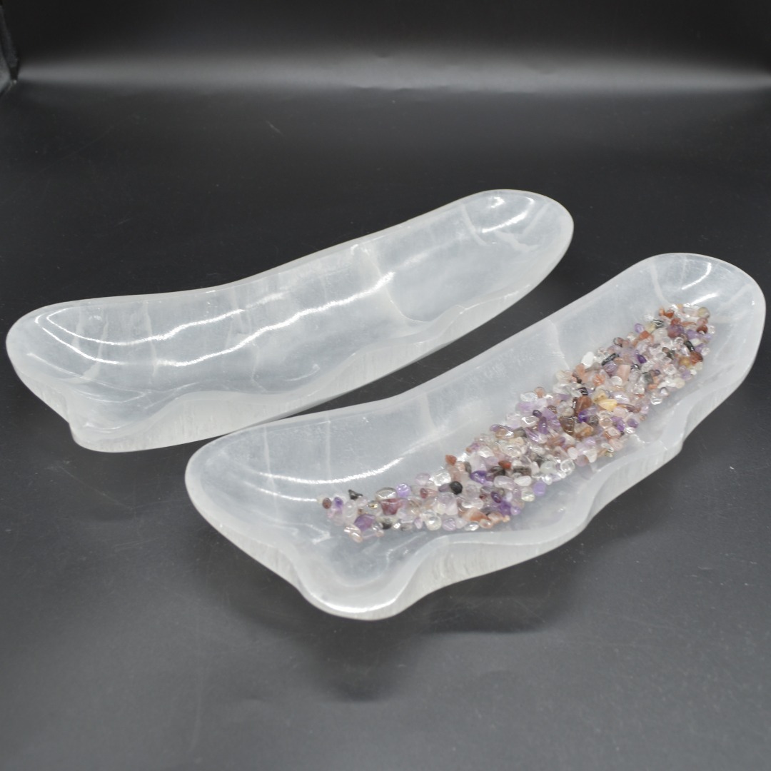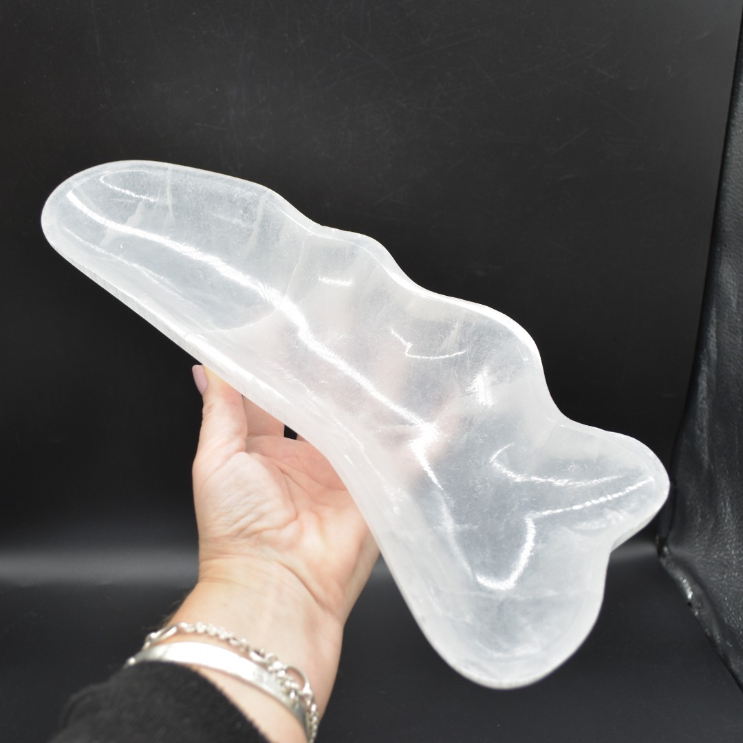 - Natural Polished Selenite (Satin Spar) Semi-precious Gemstone Irregular shaped Freeform crystal Charging bowl