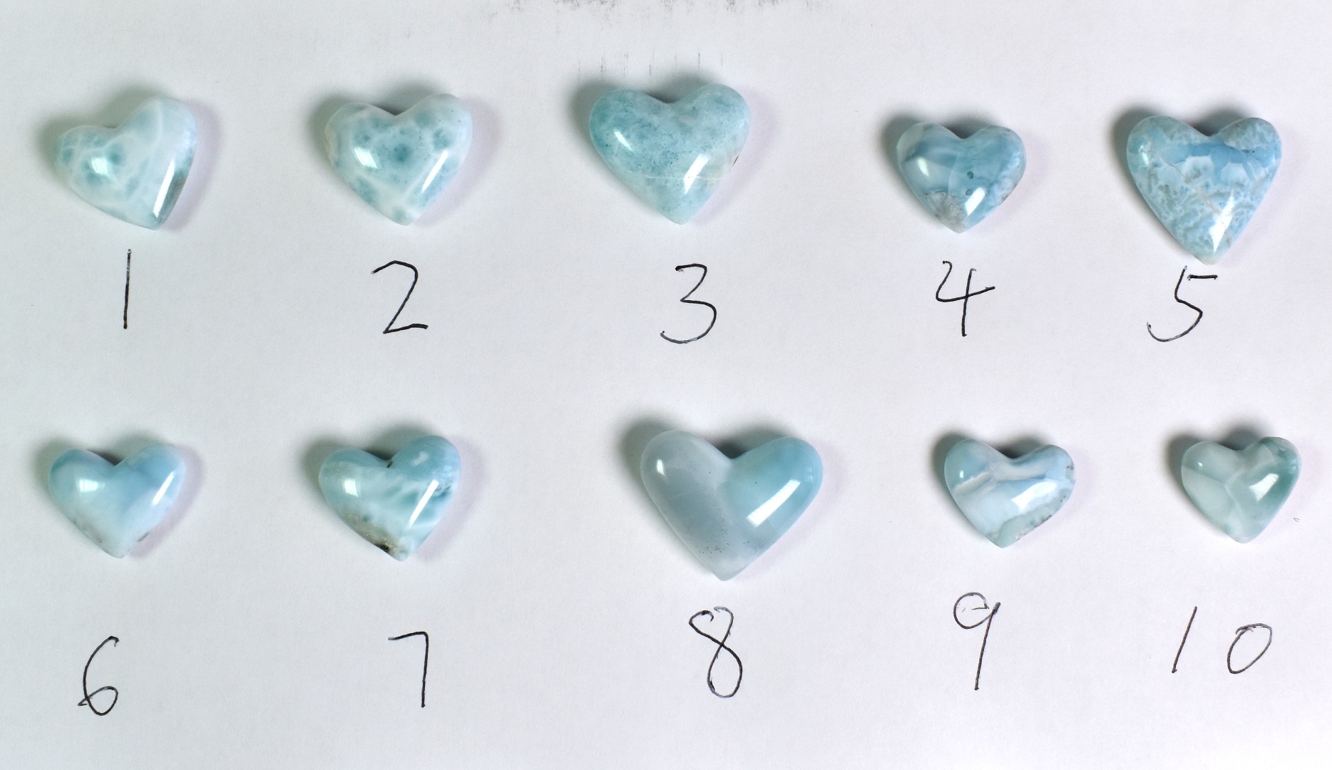 Larimar Dolphin Stone Carved Crystal Heart from Dominican Republic – 24 Options