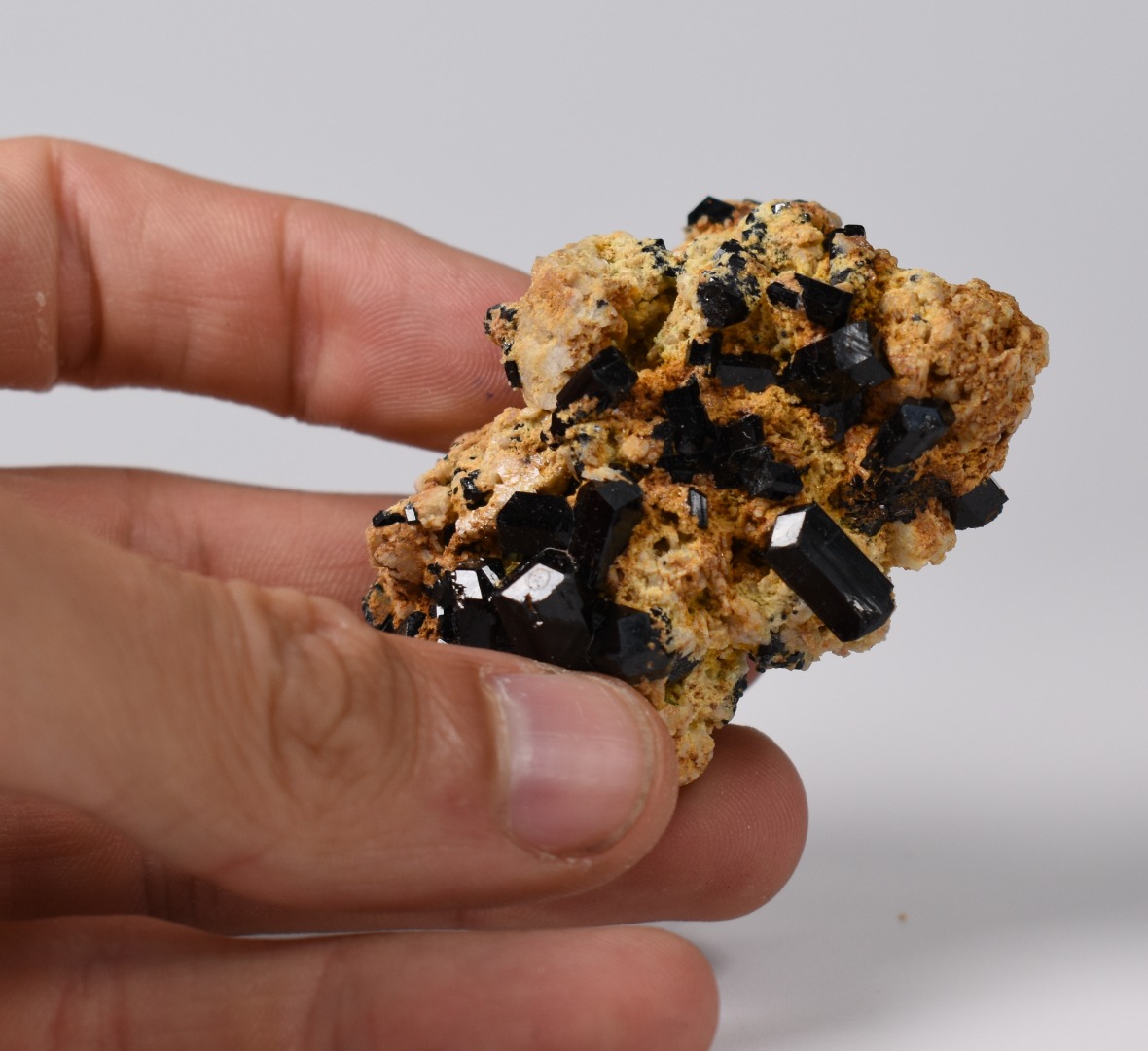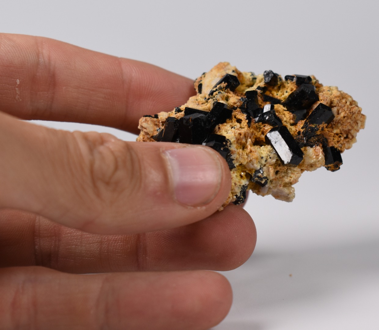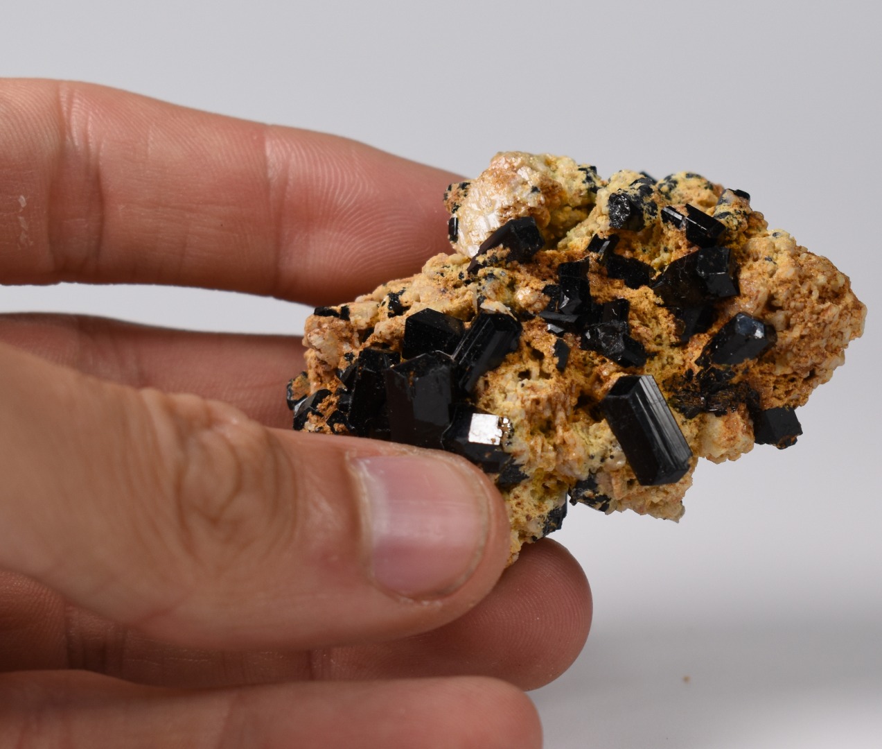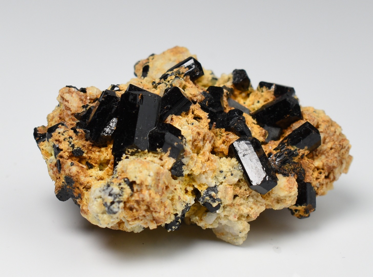 Discover the raw grounding energy of Black Tourmaline (Schorl). These stunning mineral specimens feature jet-black highly lustrous Tourmaline crystals many of which are naturally embedded in a contrasting creamy Feldspar matrix.