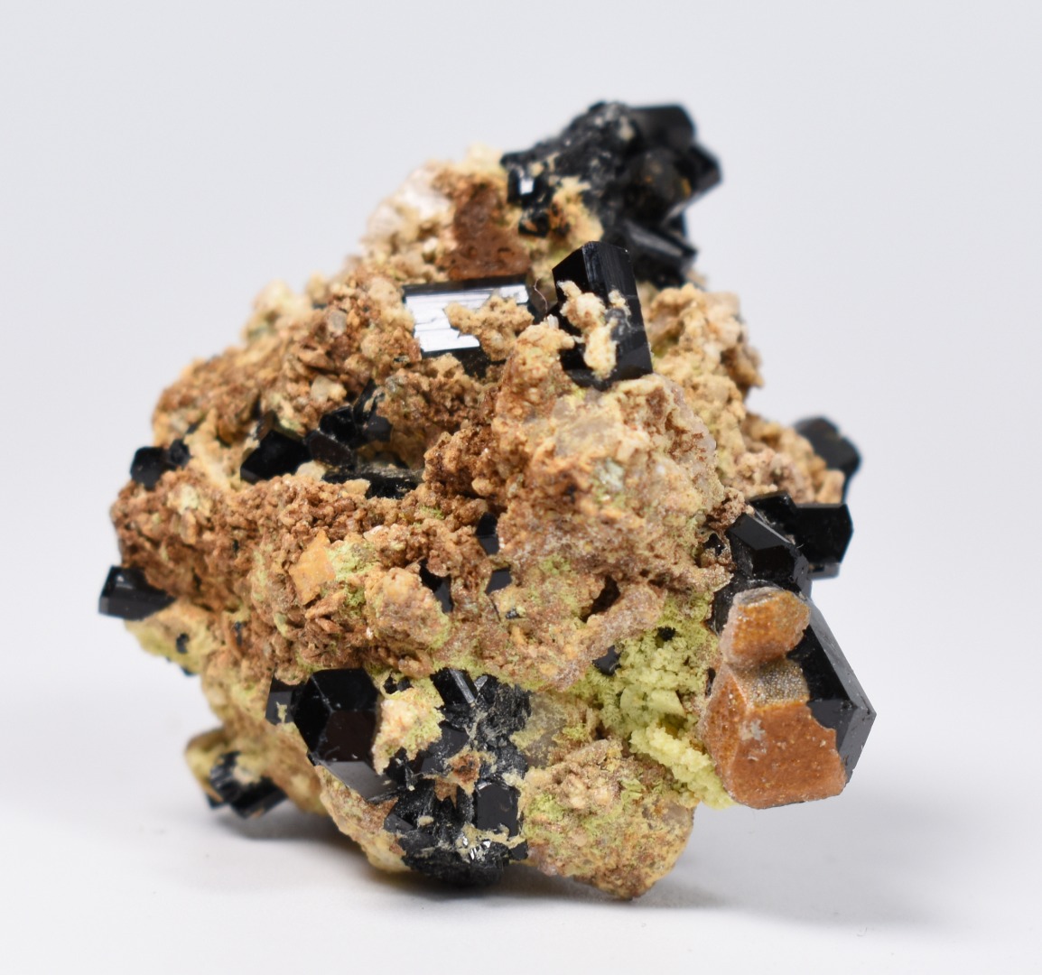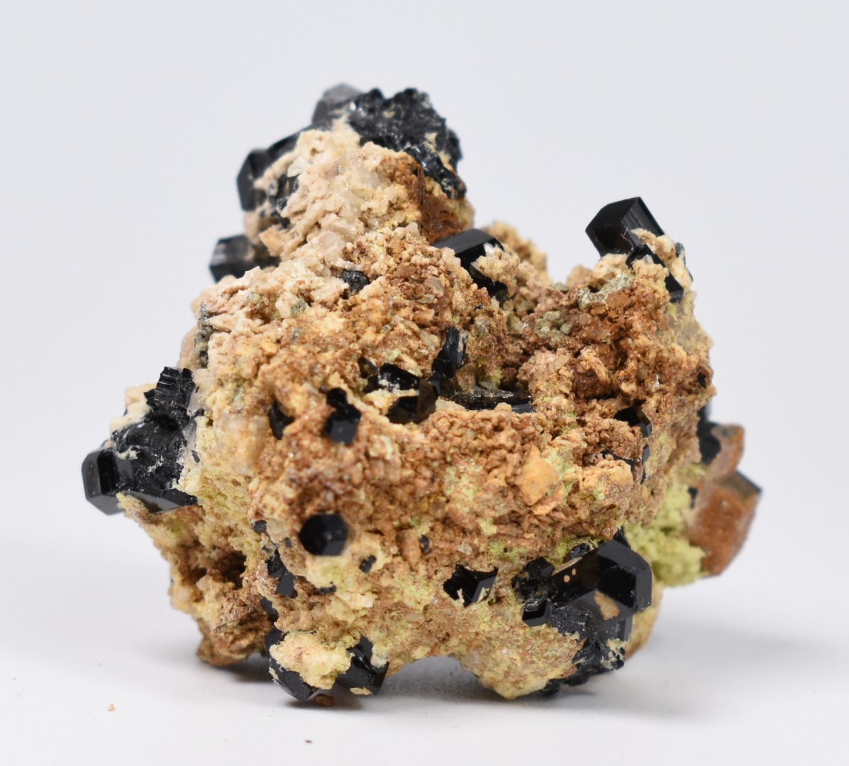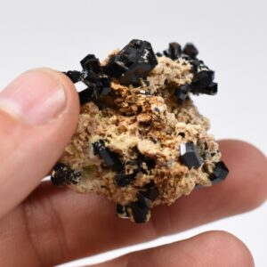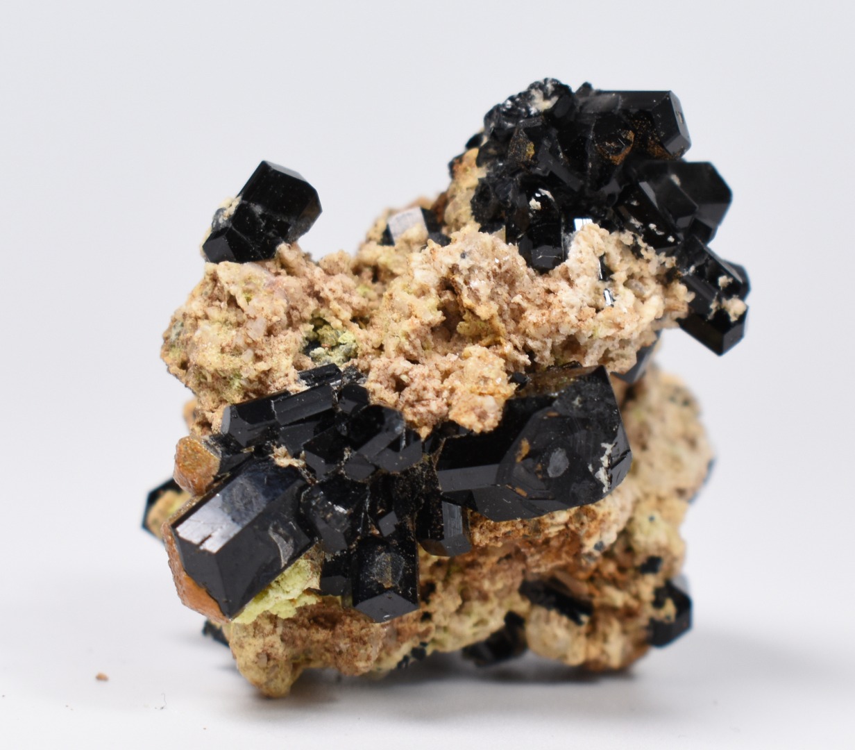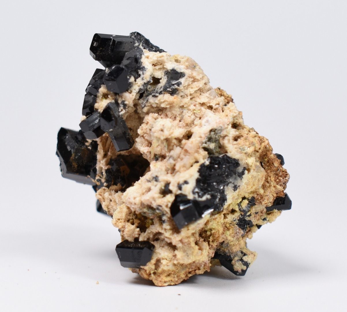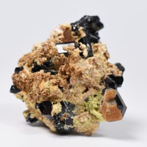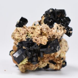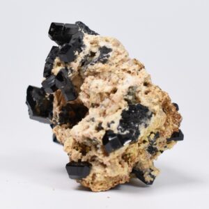 Discover the raw grounding energy of Black Tourmaline (Schorl). These stunning mineral specimens feature jet-black highly lustrous Tourmaline crystals many of which are naturally embedded in a contrasting creamy Feldspar matrix.