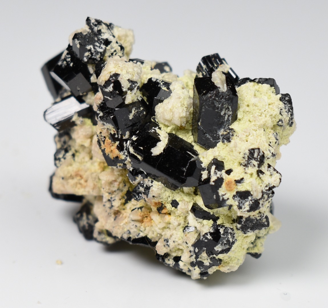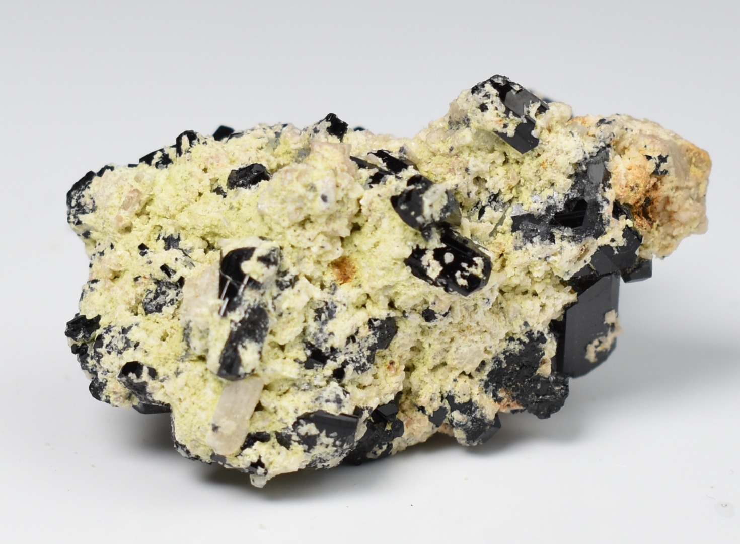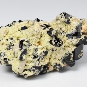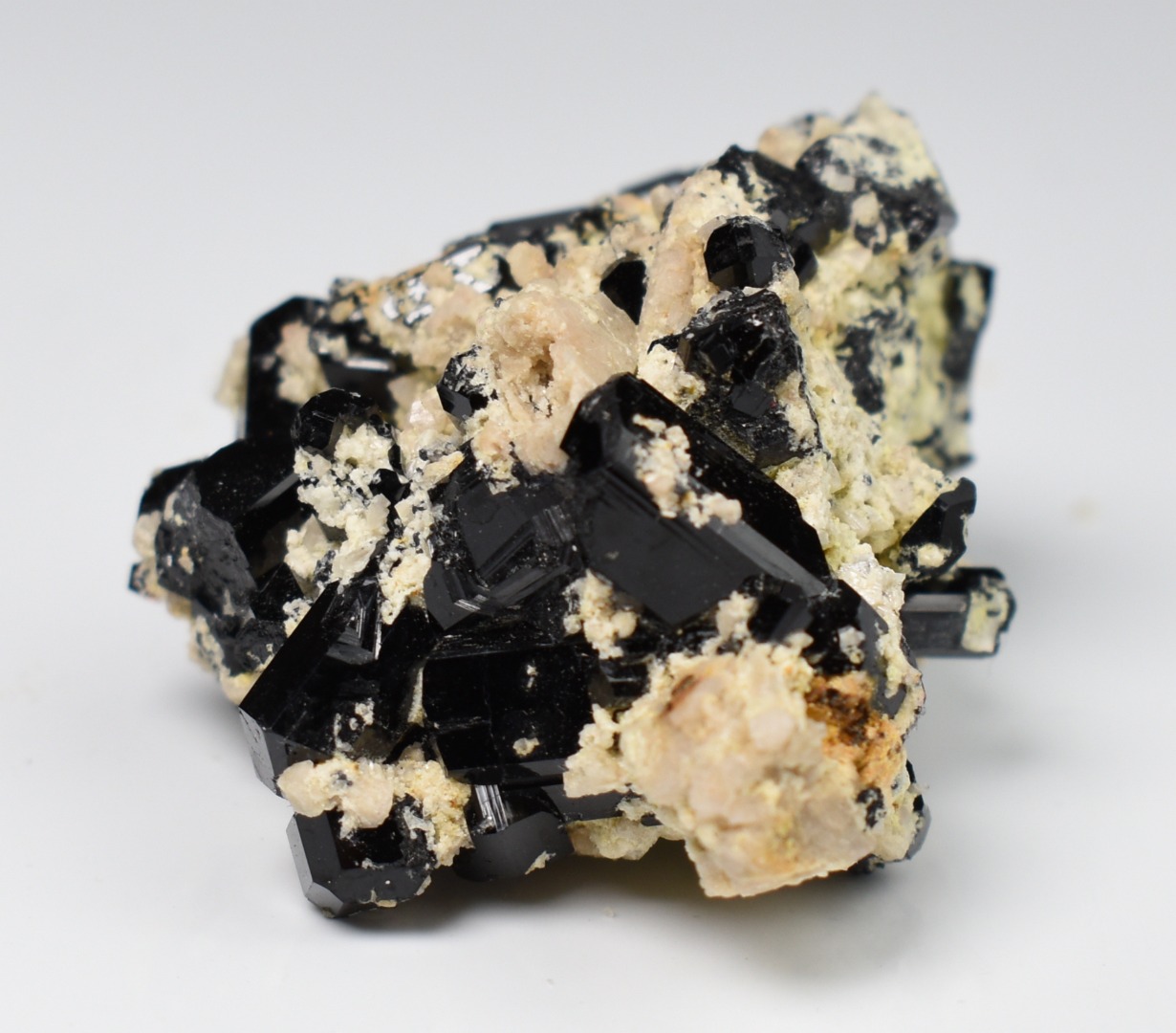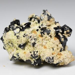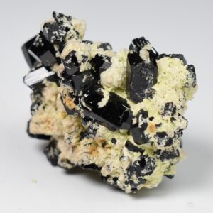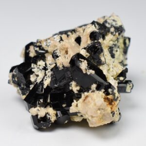 Discover the raw grounding energy of Black Tourmaline (Schorl). These stunning mineral specimens feature jet-black highly lustrous Tourmaline crystals many of which are naturally embedded in a contrasting creamy Feldspar matrix.