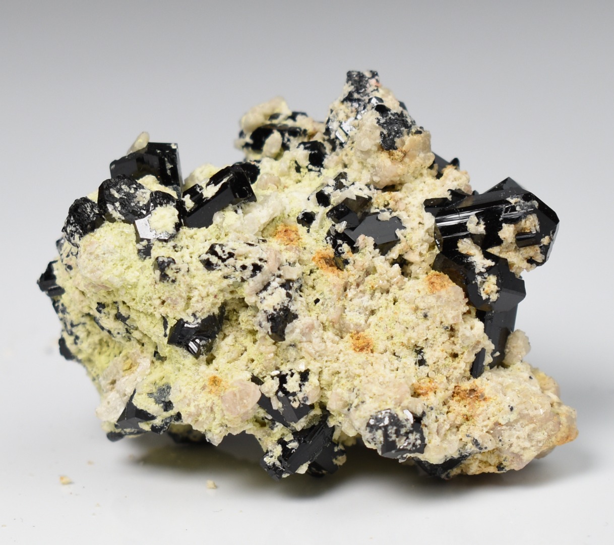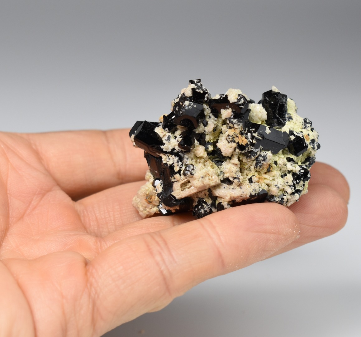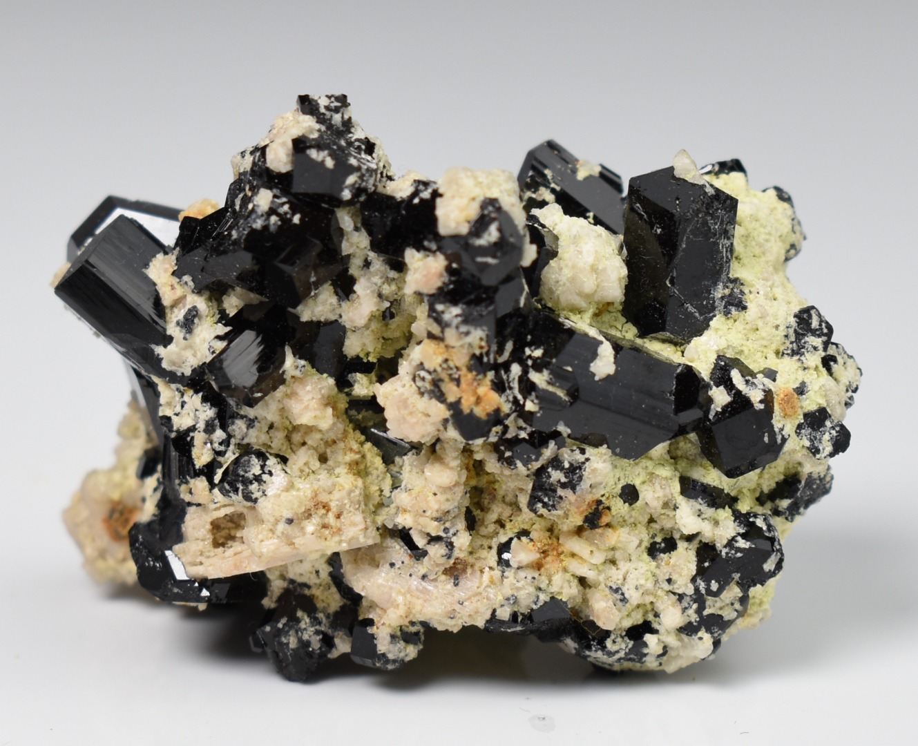 Discover the raw grounding energy of Black Tourmaline (Schorl). These stunning mineral specimens feature jet-black highly lustrous Tourmaline crystals many of which are naturally embedded in a contrasting creamy Feldspar matrix.