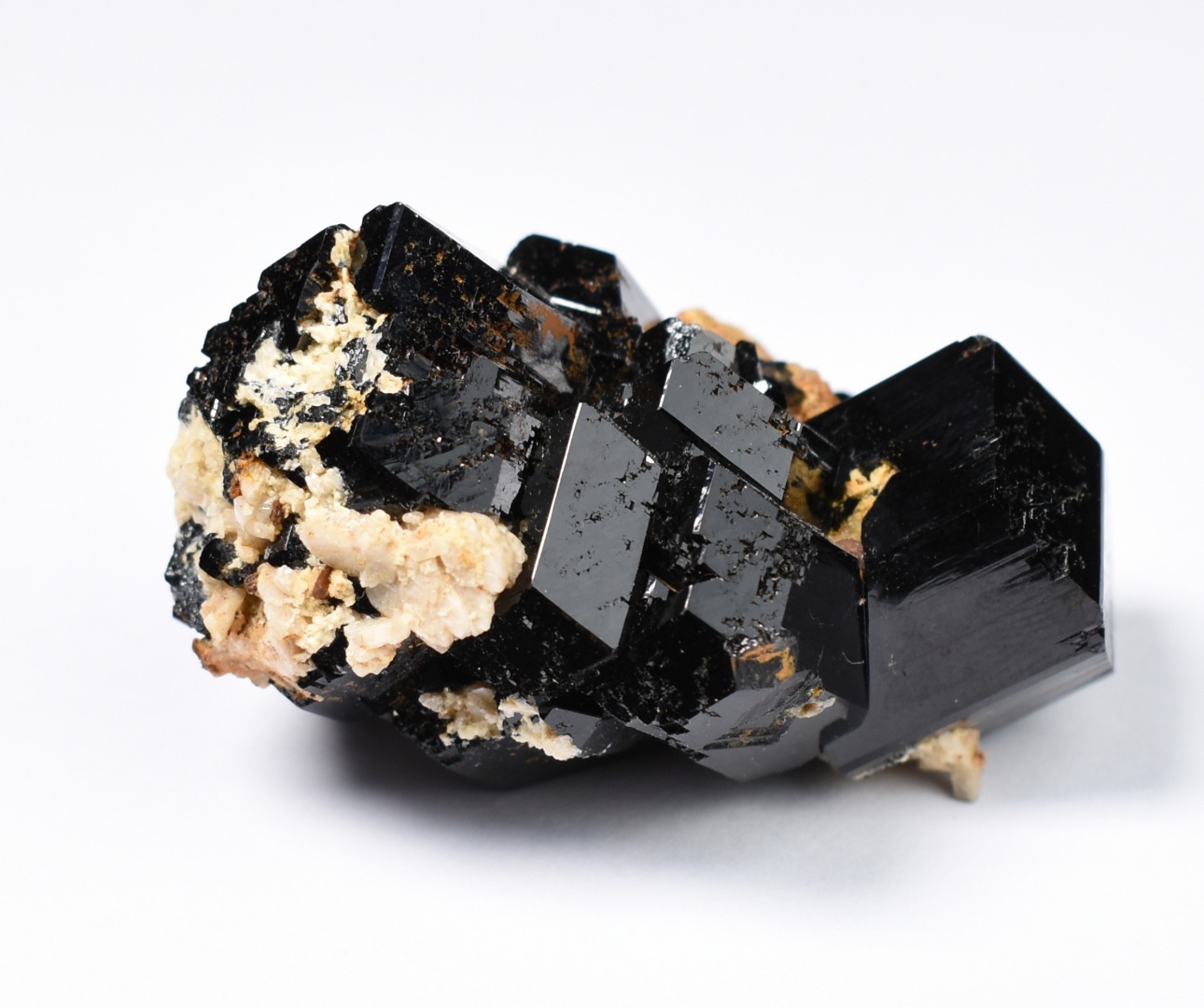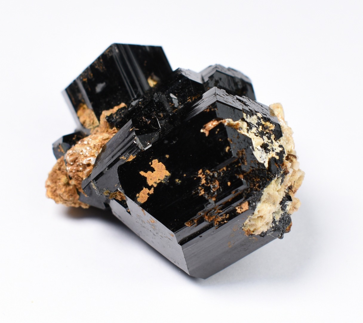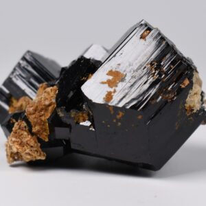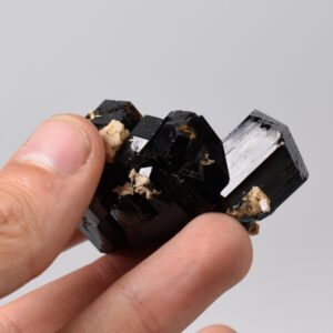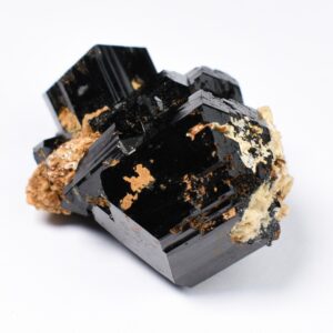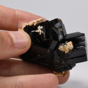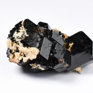 Discover the raw grounding energy of Black Tourmaline (Schorl). These stunning mineral specimens feature jet-black highly lustrous Tourmaline crystals many of which are naturally embedded in a contrasting creamy Feldspar matrix.