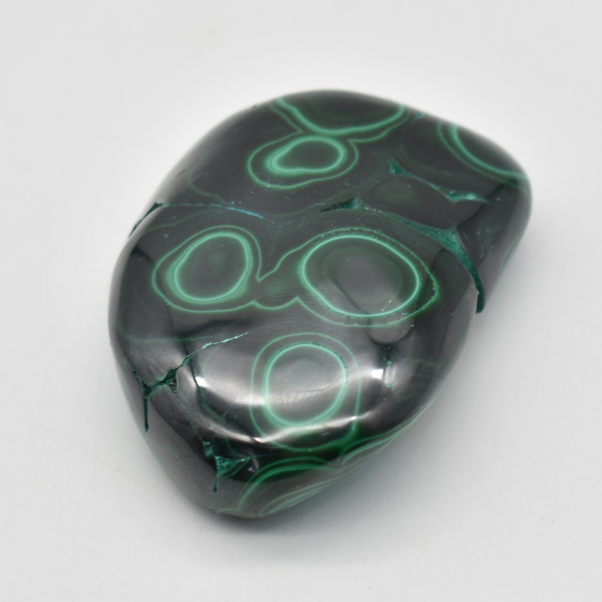 Malachite is often used as an ore of copper. It has an opaque transparency and sometimes has a patterned surface. Malachite is a rich shade of green. Malacolla is a mixture of Malachite and Chrysocolla. Chrysocolla is a hydrated copper phyllosilicate mineral, named for the Greek words for gold and glue.