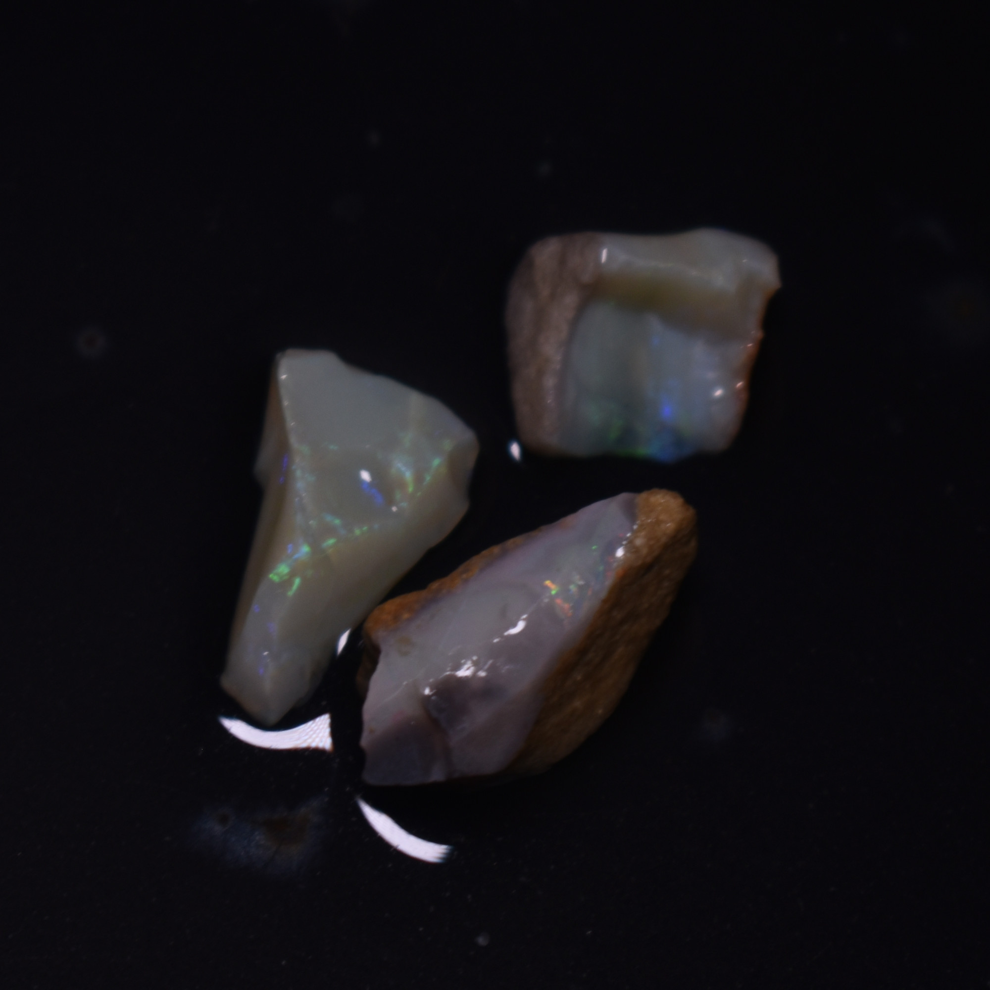 Quantity: 3 Mintabie Opal Specimens. You will receive the exact gemstones shown in the photos. We have tried to capture the beautiful colour tones as best we can in a photograph.