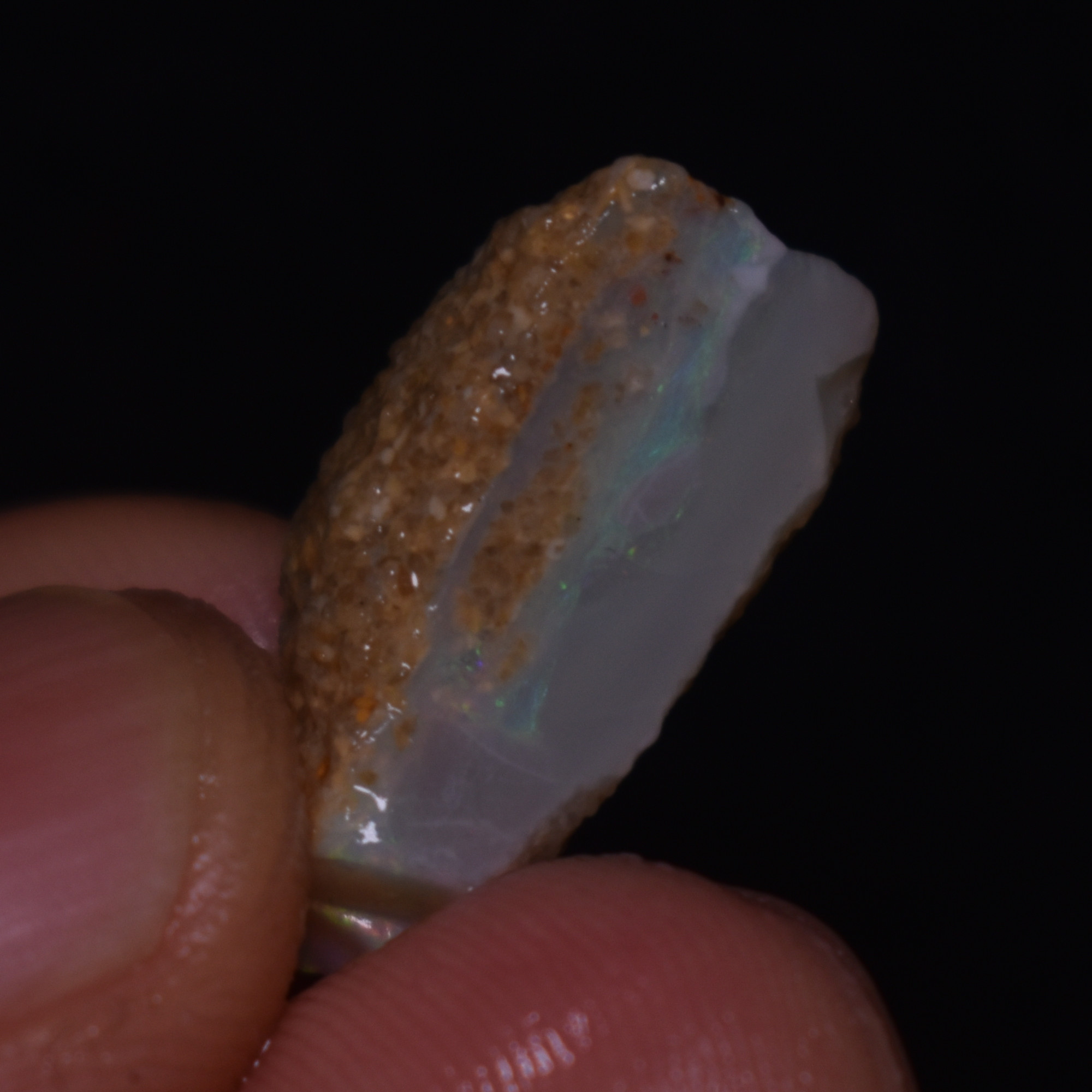 The Mintabie opal gets its name from the location it is mined in Mintabie, South Australia. This area is famous for producing milky white to almost black opal some of the hardest and most durable opal in the world. These Opals usually found in flat sheets referred to as plates and can vary in body tone and appearance all the way from clear crystal, to very dark, or black.