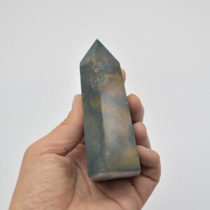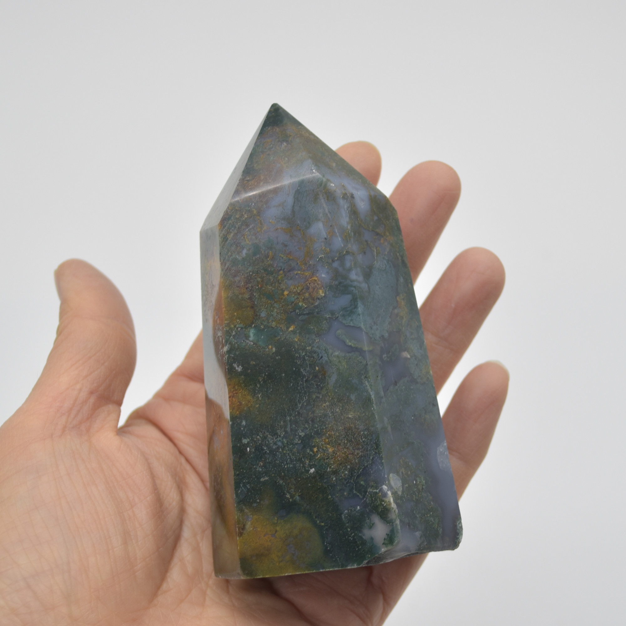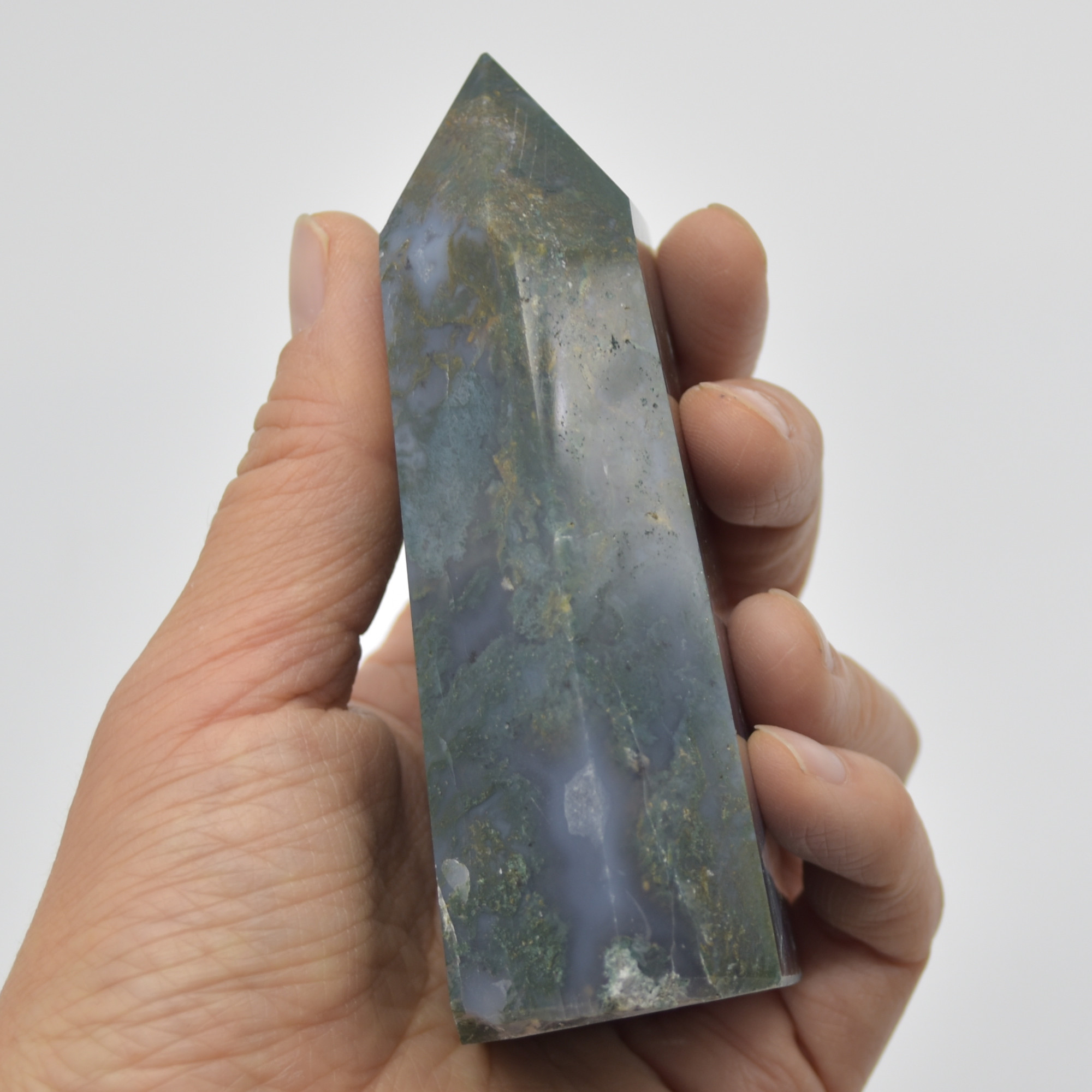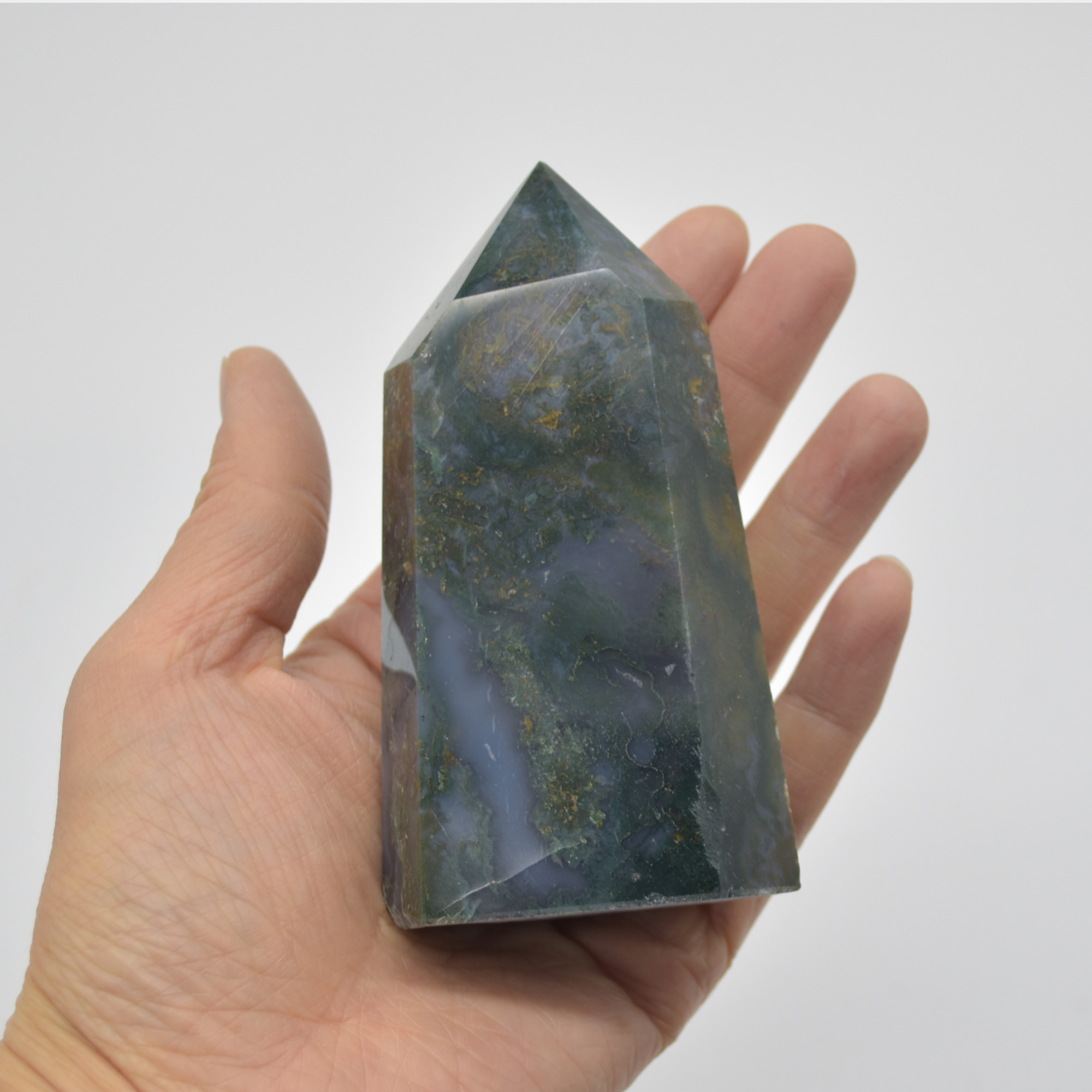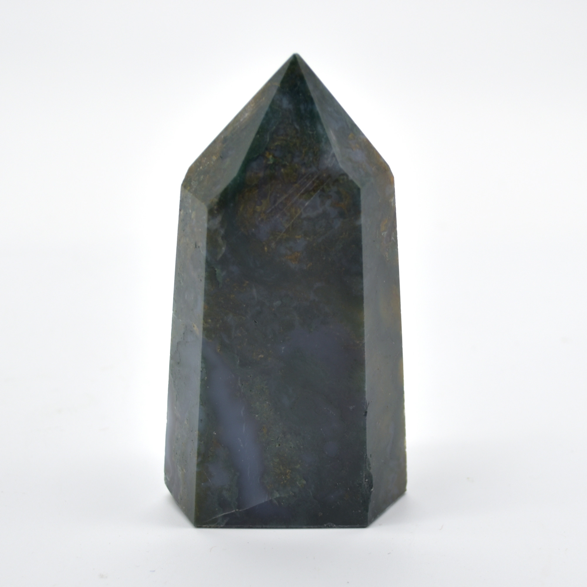 Moss Agate Crystal Point, Tower, Wand – 10cm x 5.5cm – 256 grams #1