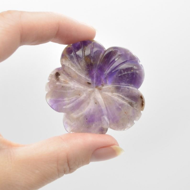 Natural Polished Banded Amethyst Semi-precious Gemstone Hand Carved Flower