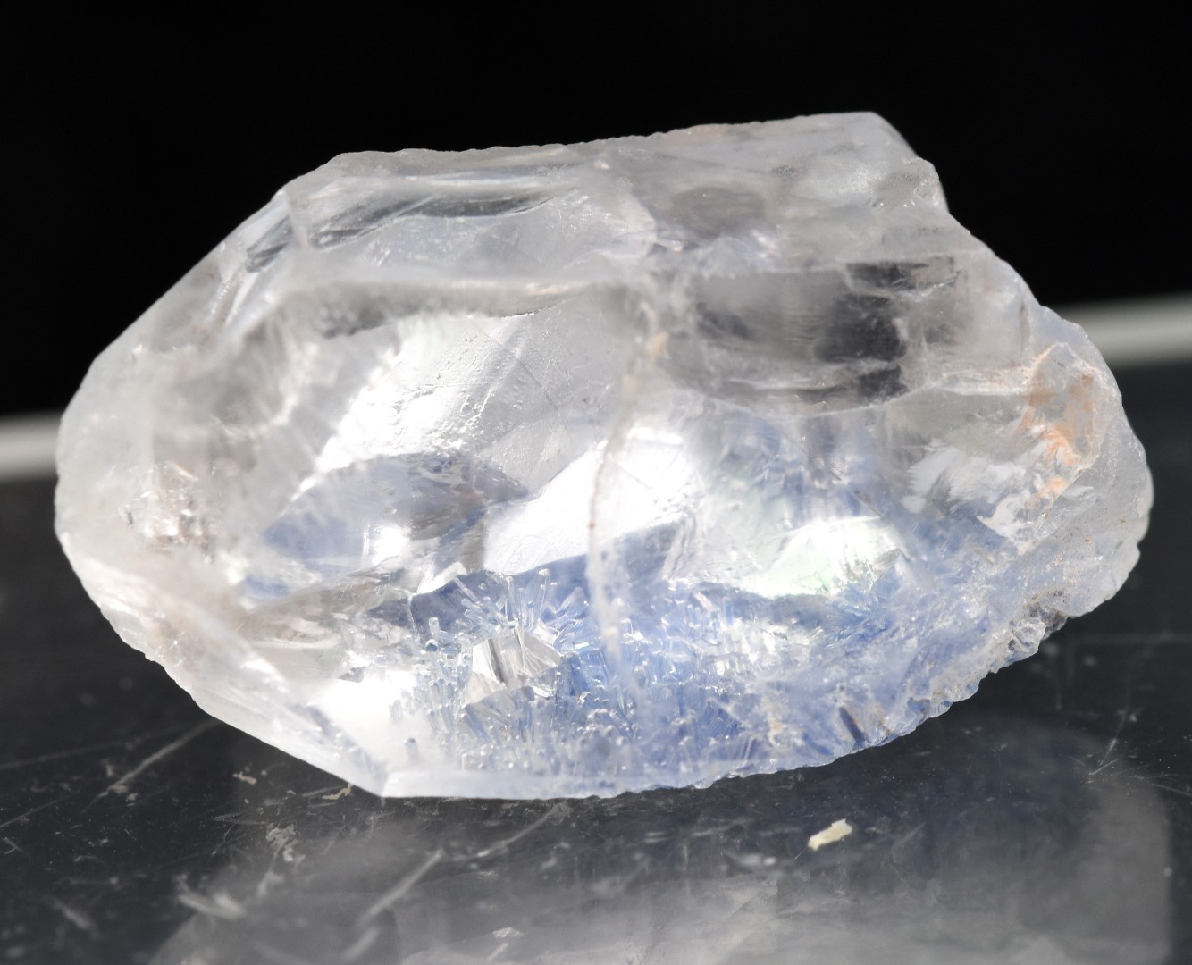 - Natural Dumortierite in Clear Quartz Inclusion Raw Crystal Specimen