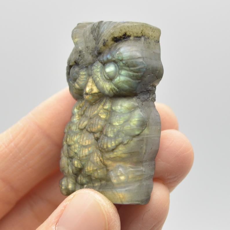 Labradorite Owl – 31 grams – 4.5cm x 2.5cm x 1.3cm #026