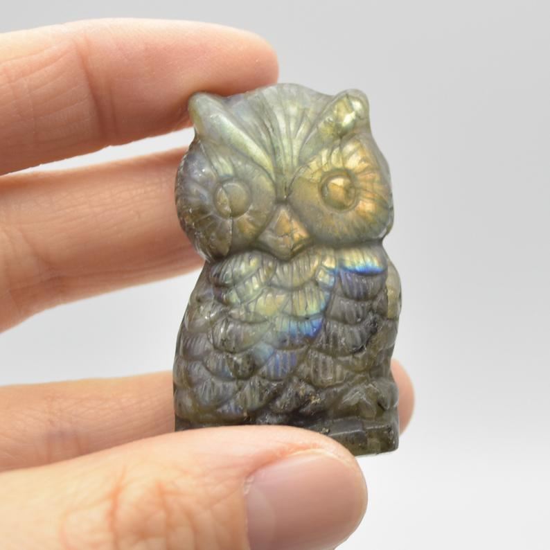 Labradorite Owl – 33 grams – 4.5cm x 2.5cm x 1.3cm #023