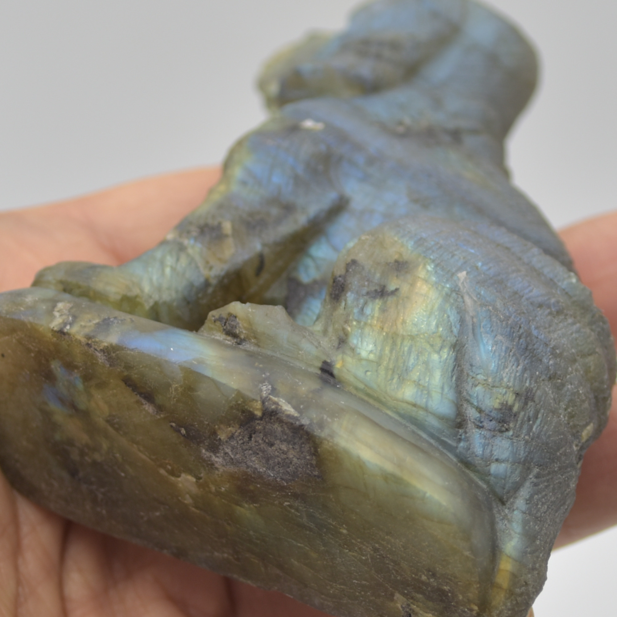 Labradorite Carved Blood Hound Dog with stunning blue and green iridescent hues
