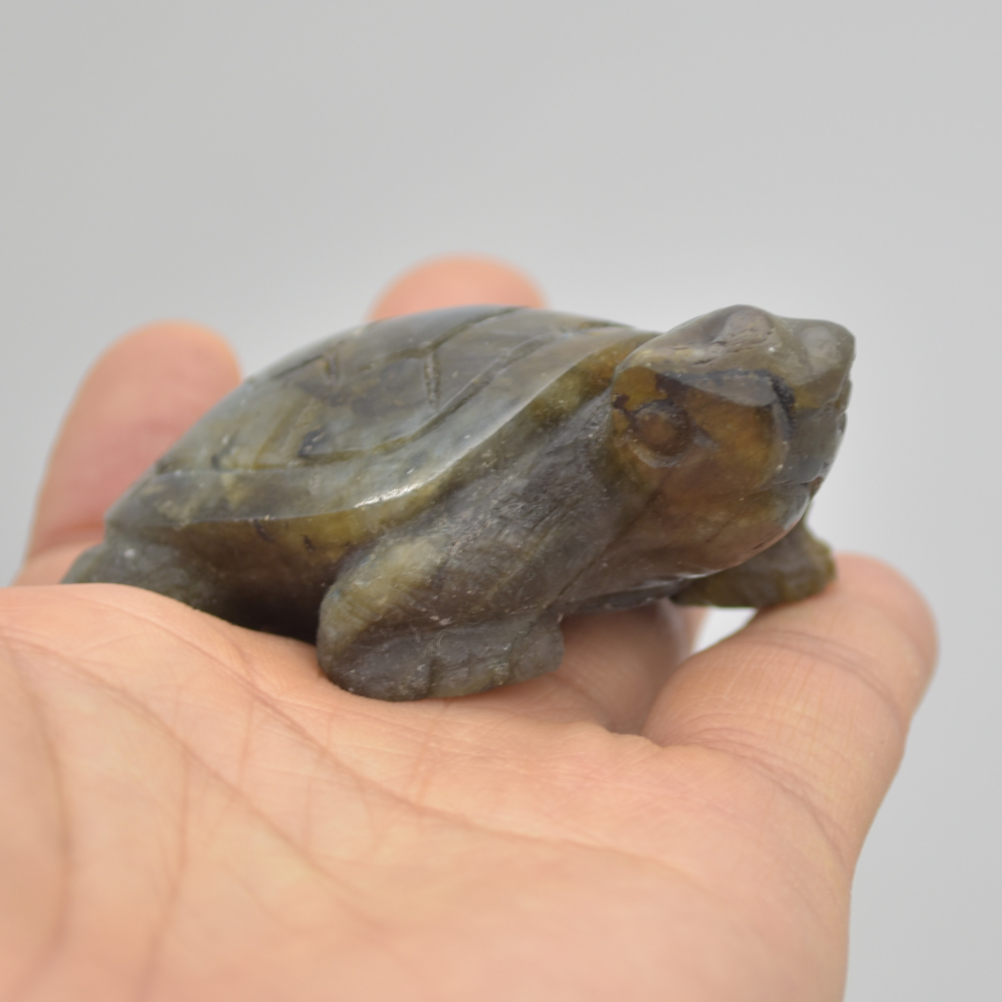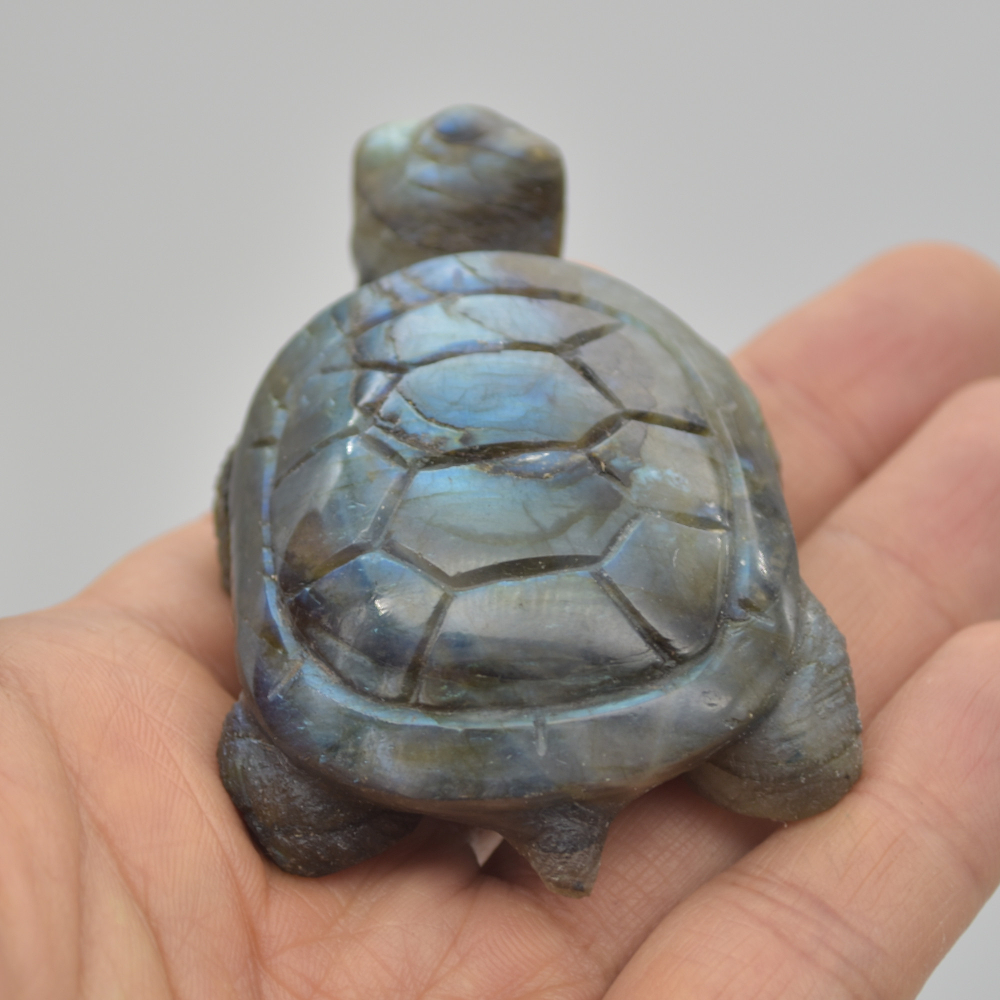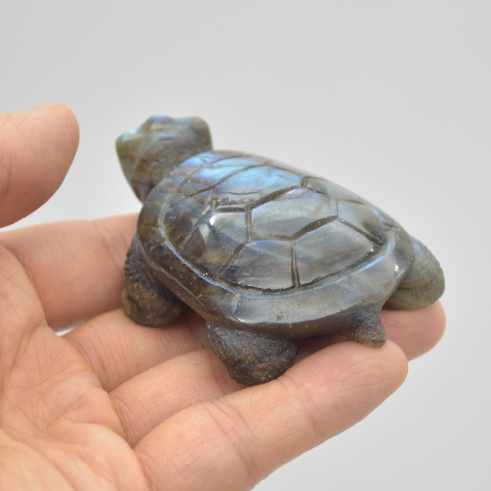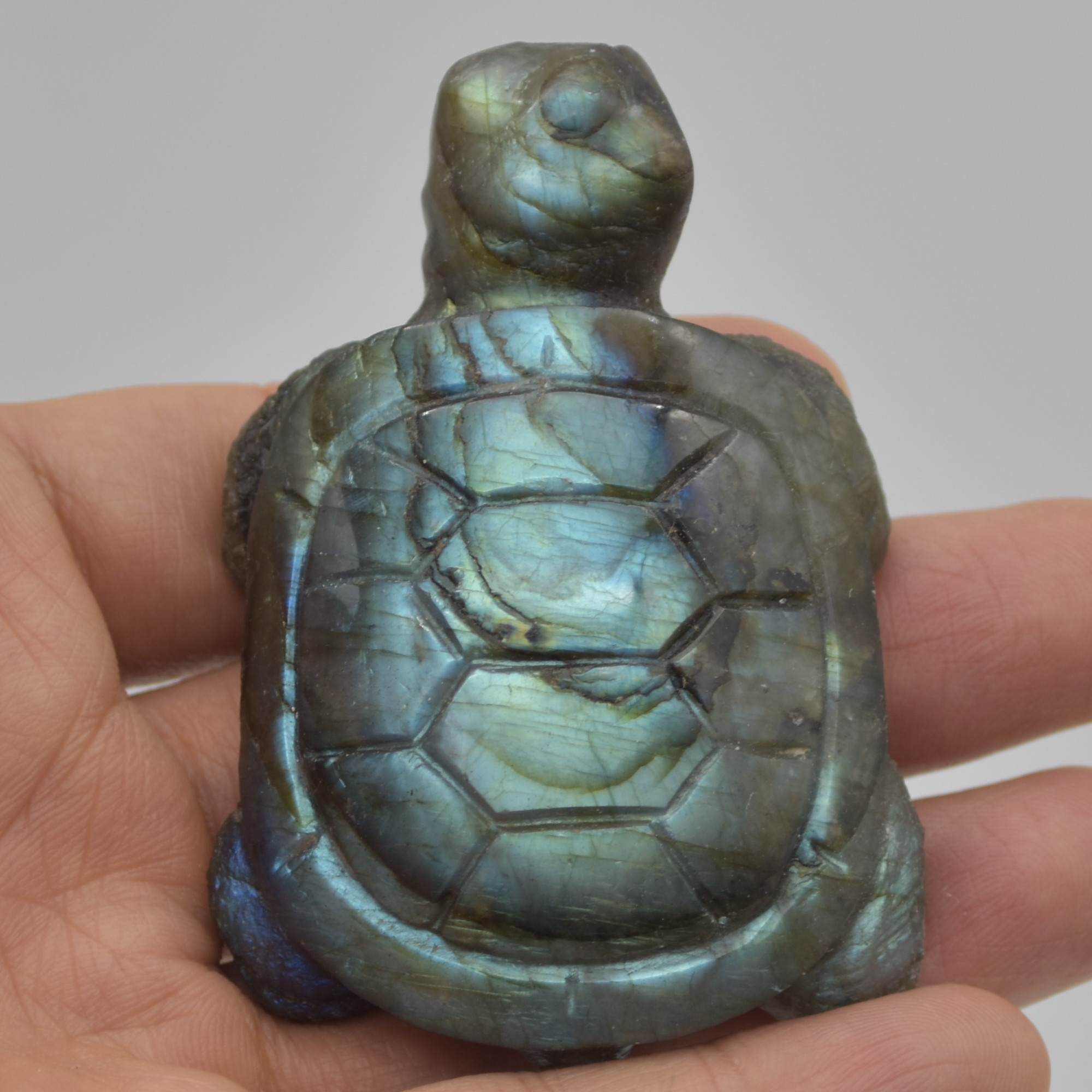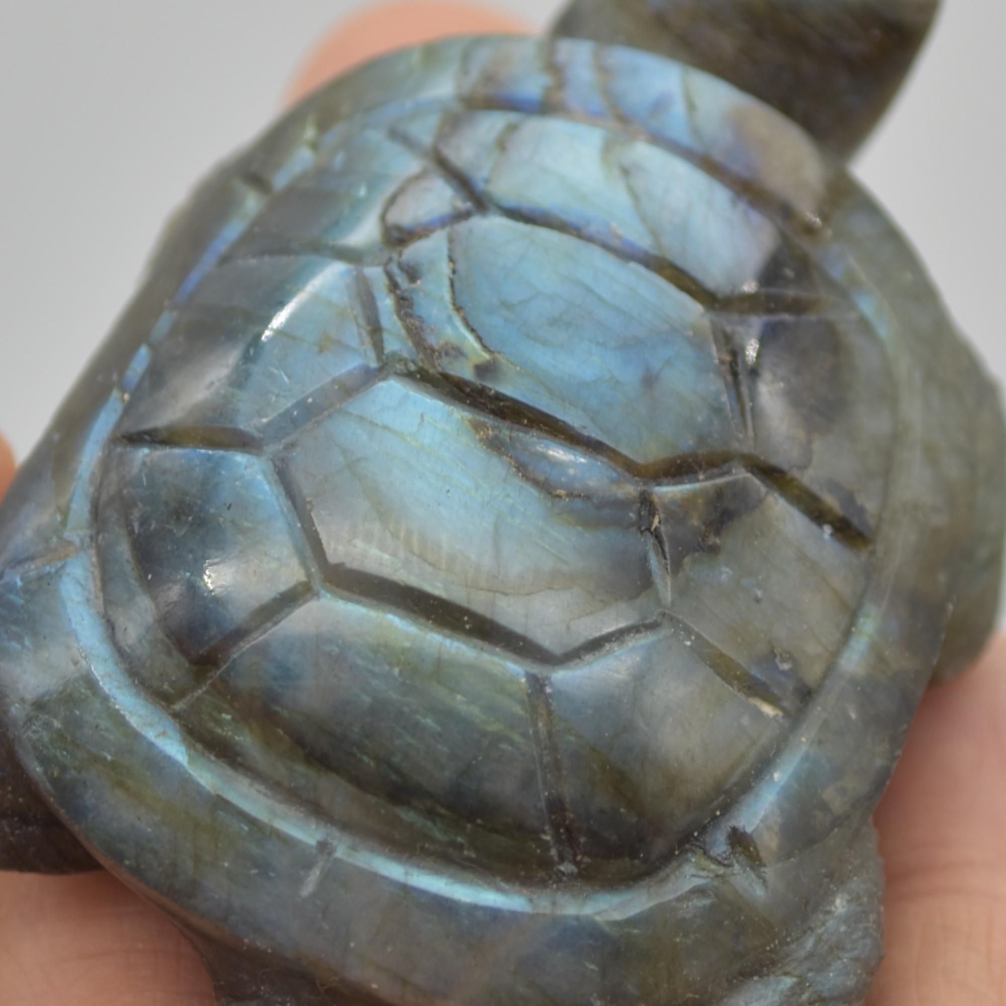 Labradorite Carved Turtle with stunning blue and green iridescent hues