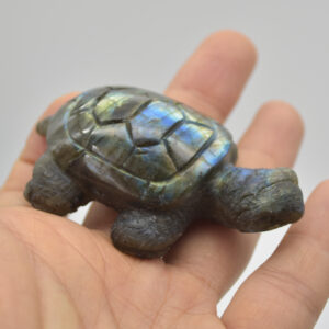Labradorite Carved Turtle with stunning blue and green iridescent hues
