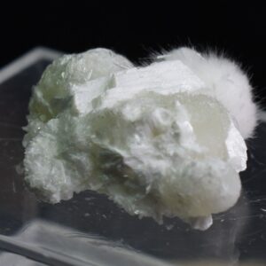 - Okenite transparent silicate mineral usually associated with zeolite and is found in the Indian state of Maharashtra. It is colourless to white with some hints of yellow. It most commonly is found as small white “cotton ball” formations and clusters of straight, fibrous crystals within basalt geodes or attached to Gyrolite which is a rare sodium calcium silicate hydrate mineral. This crystal is a member of the Zeolite family and crystallizes in the form of spherical structures normally bright white in colour. Okenite is known as the Stone of the New Age. These crystals are extremely fragile and should be handed carefully. The fibres are so fine they can cause splinters.