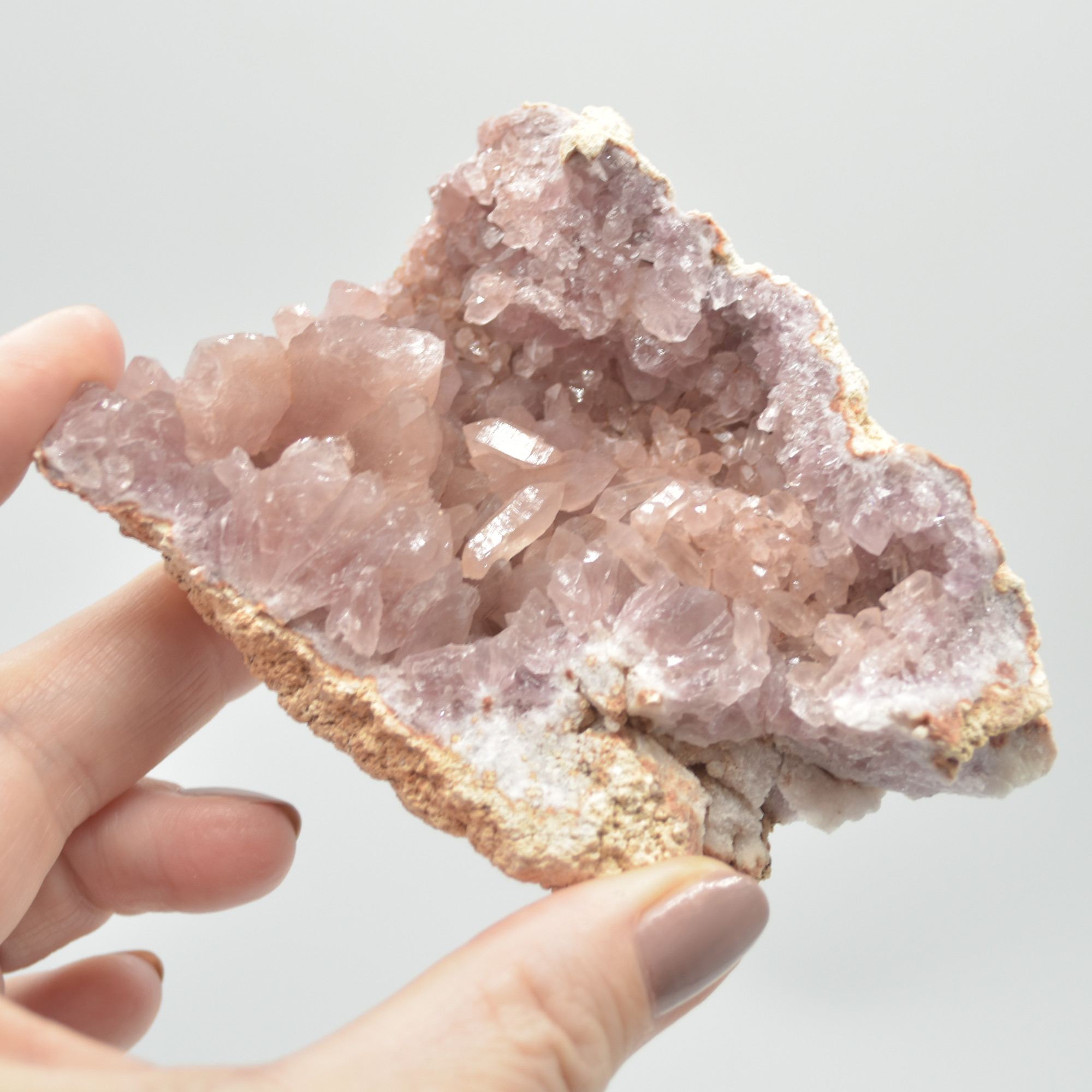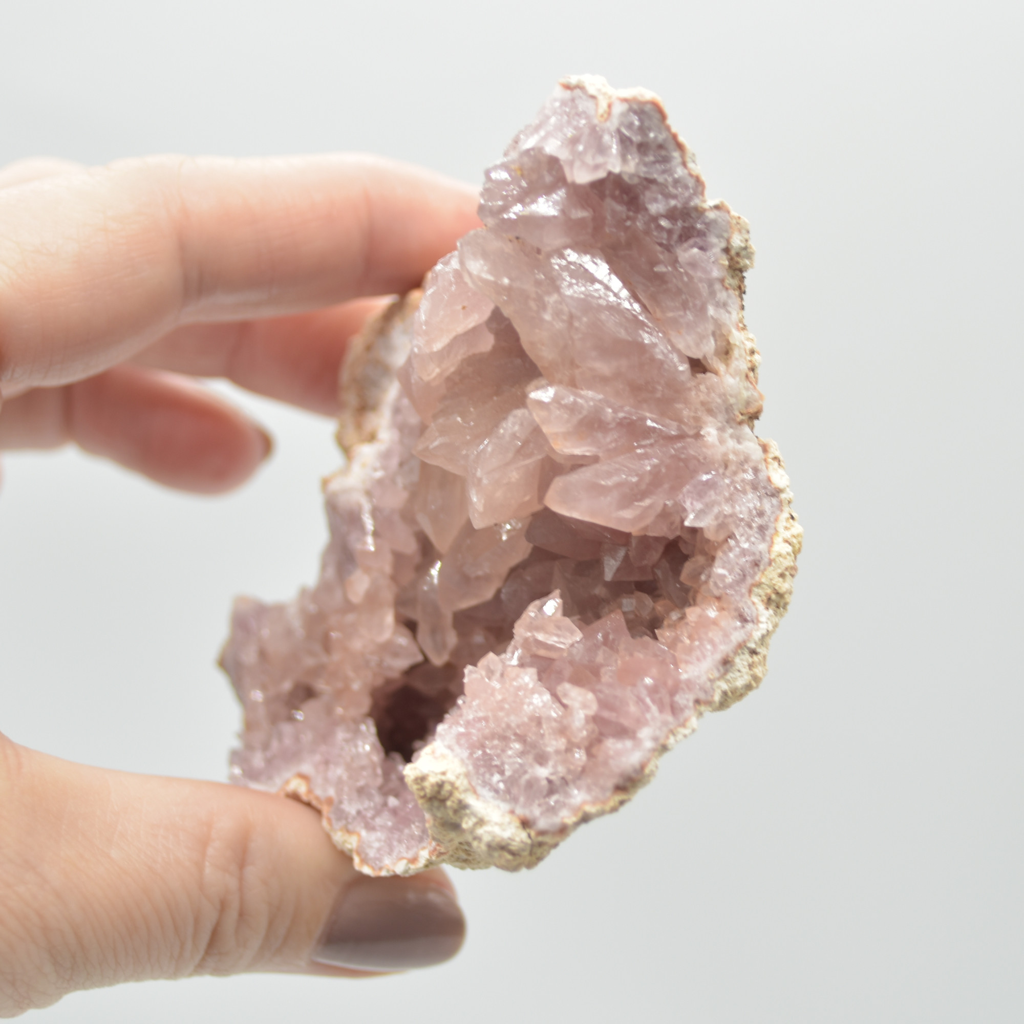 Pink amethyst is a new colour variety of quartz coming from Patagonia, Argentina. The geodes are extracted by hand from “El Choique” and “Colli Cure” mines.