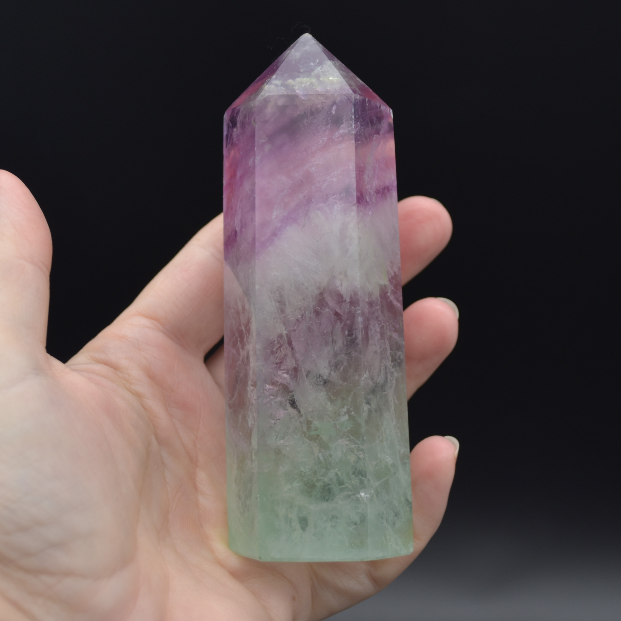 Pink Rainbow Fluorite Point, Tower, Wand – 355 grams