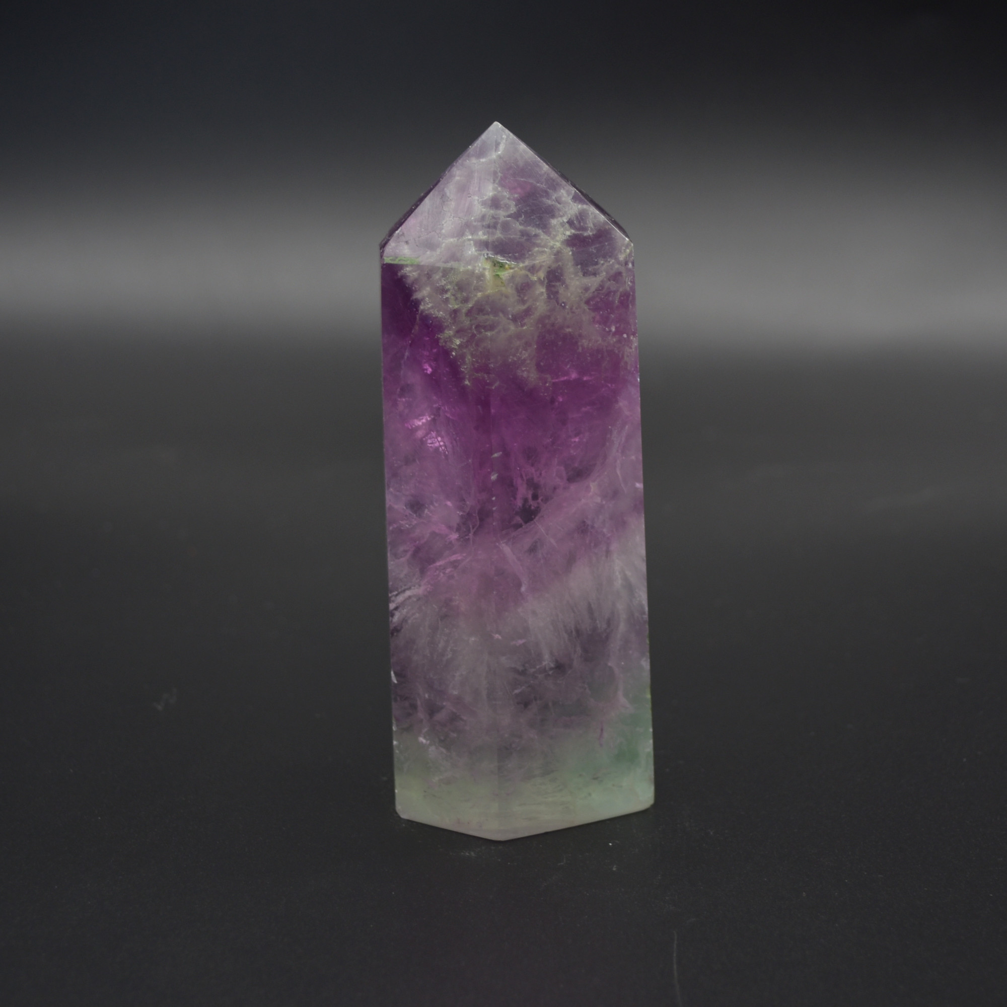 Natural Pink Rainbow Fluorite Gemstone Point / Tower / Wand with Pink, Purple and Green shades.
