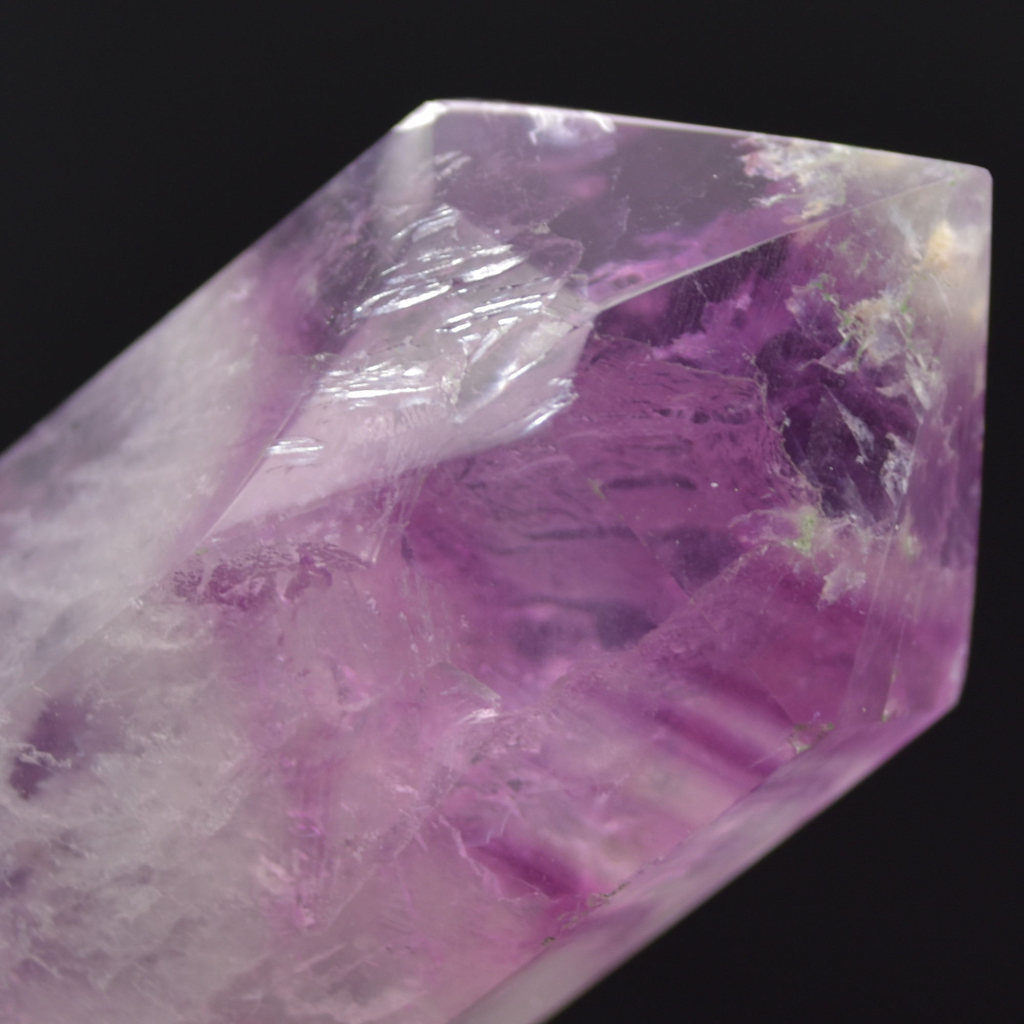 Natural Pink Rainbow Fluorite Gemstone Point / Tower / Wand with Pink, Purple and Green shades.