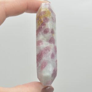 Pink Tourmaline is a variety of Tourmaline that can be found in pale light pink, to bright pink. This mineral can be seen in raw, transparent, and opaque formations. It’s commonly found in association with Quartz, and other Tourmaline colours. The word ‘tourmaline’ comes from the ancient Sinhalese word turmali, which means ‘a mixed colour precious stone’.