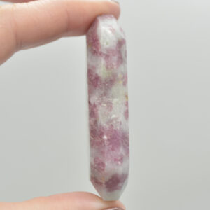 Pink Tourmaline is a variety of Tourmaline that can be found in pale light pink, to bright pink. This mineral can be seen in raw, transparent, and opaque formations. It’s commonly found in association with Quartz, and other Tourmaline colours. The word ‘tourmaline’ comes from the ancient Sinhalese word turmali, which means ‘a mixed colour precious stone’.