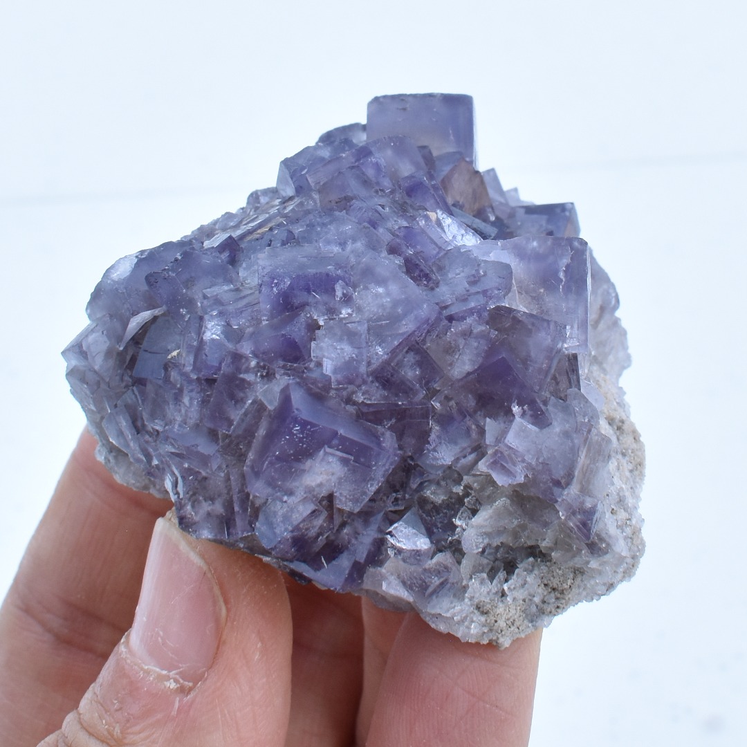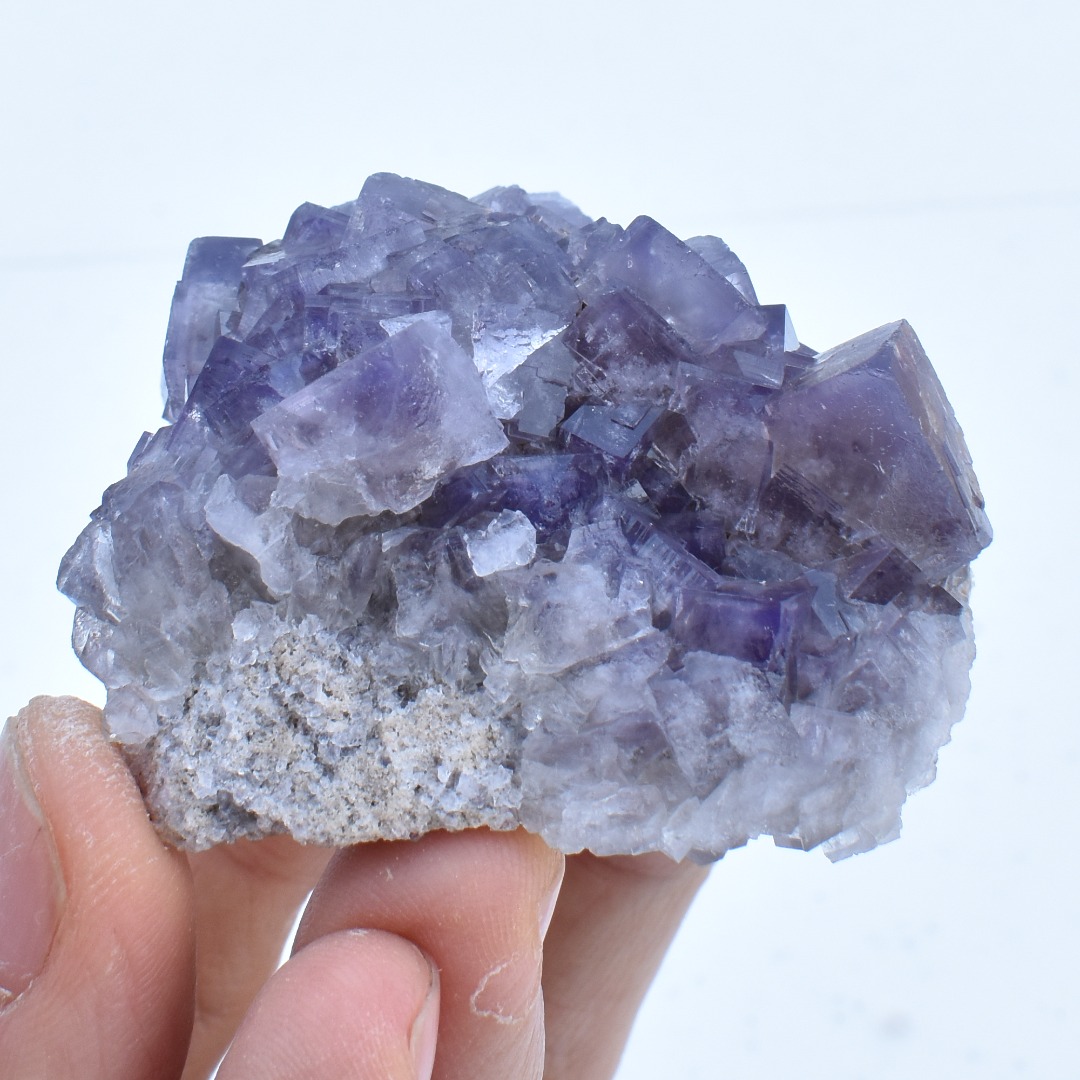 • These Fluorite clusters have been sourced directly from the Greenlaws mine, UK and we have personal connections with the miners. Most Fluorite from Greenlaws are a rich purple colour which is shown best under natural sunlight. Each crystal has been carefully hand selected with several inter-growing cubic crystals.